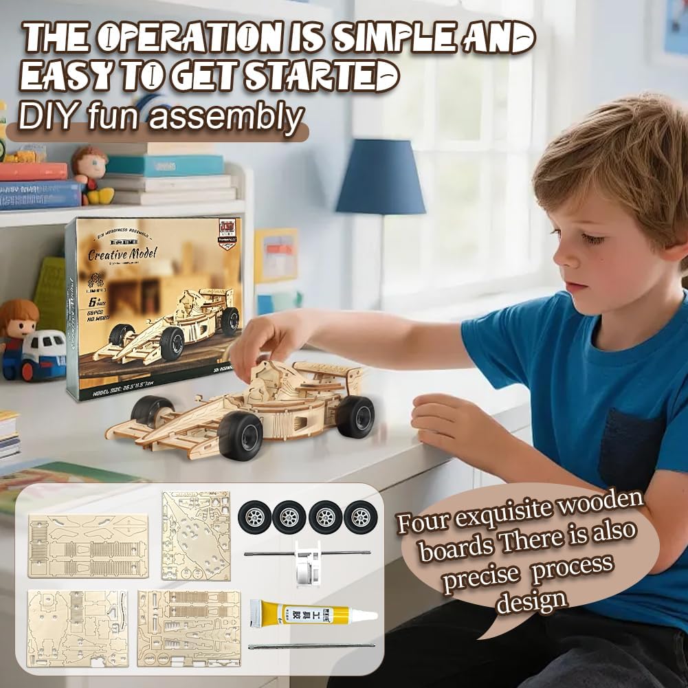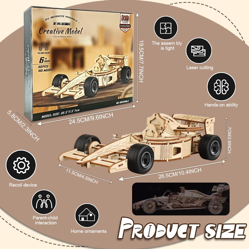 DESIGN AUTENTICO: Modellino di auto da corsa Formula 1 realizzato in legno di alta qualità con dettagli meccanici intricati e ingranaggi funzionanti ASSEMBLAGGIO CREATIVO: Kit di costruzione 3D che stimola la creatività e le capacità di problem-solving attraverso un montaggio progressivo e intuitivo COMPONENTI PREMIUM: Include pezzi in legno pretagliati con precisione e ruote in gomma per un risultato realistico e duraturo ESPERIENZA EDUCATIVA: Perfetto per imparare i principi base della meccanica e dell'ingegneria attraverso il gioco costruttivo REGALO IDEALE: Ottimo come regalo per appassionati di auto, modellismo e puzzle 3D, adatto sia per adulti che per bambini