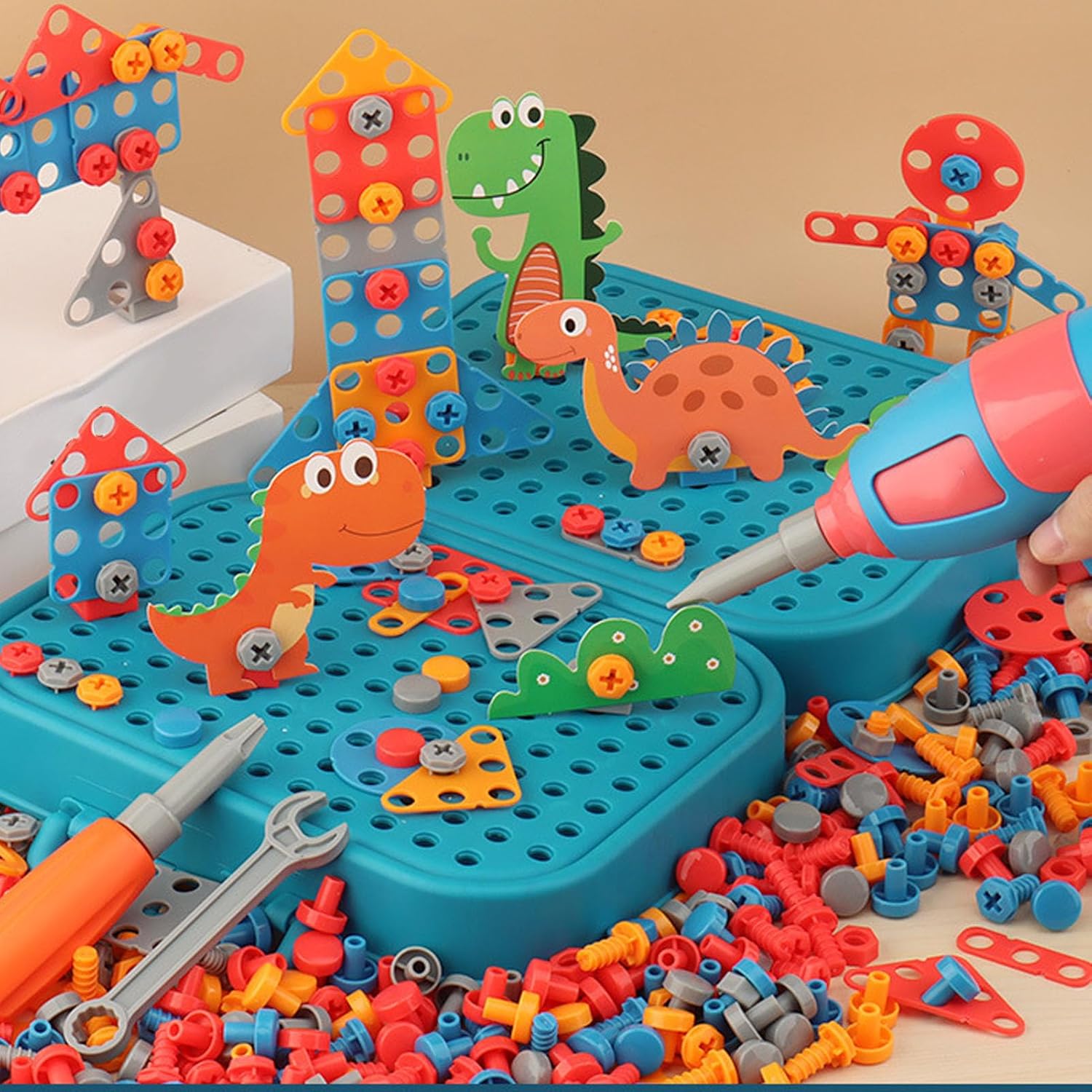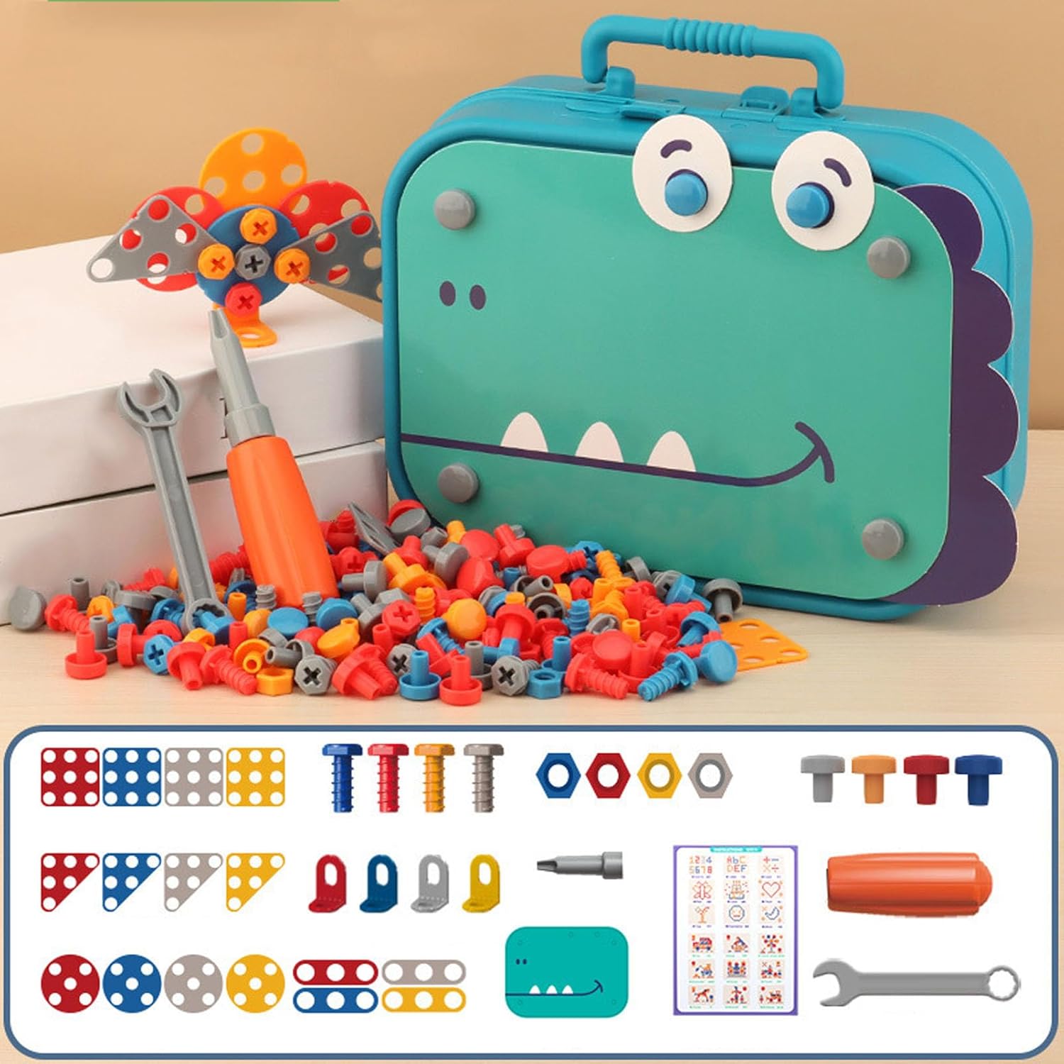 Trapano elettrico: con lo strumento di perforazione è possibile esercitare il pensiero logico e le capacità di adattamento della mano e degli occhi, rimuovendo e assemblando pezzi del puzzle. Materiale eccellente: questa cassetta degli attrezzi è realizzata in plastica resistente e realizzata per resistere all'usura e ai danni, permettendoti di goderne a lungo. È un ottimo investimento giocare ore di folle. Istruzione e divertimento: i giocattoli puzzle offrono un'esperienza di apprendimento divertente e aiutano i bambini a esplorare e comprendere le conoscenze meccaniche. Gioco di simulazione: ispira la creatività e l'immaginazione di tuo figlio con questo giocattolo realistico, impara attraverso il gioco reale e promuovi le capacità di risoluzione dei problemi. Sicuro e durevole: questa cassetta degli attrezzi progettata con sicurezza che contiene forme di dinosauro accuratamente dettagliate che lo rendono adatto per.