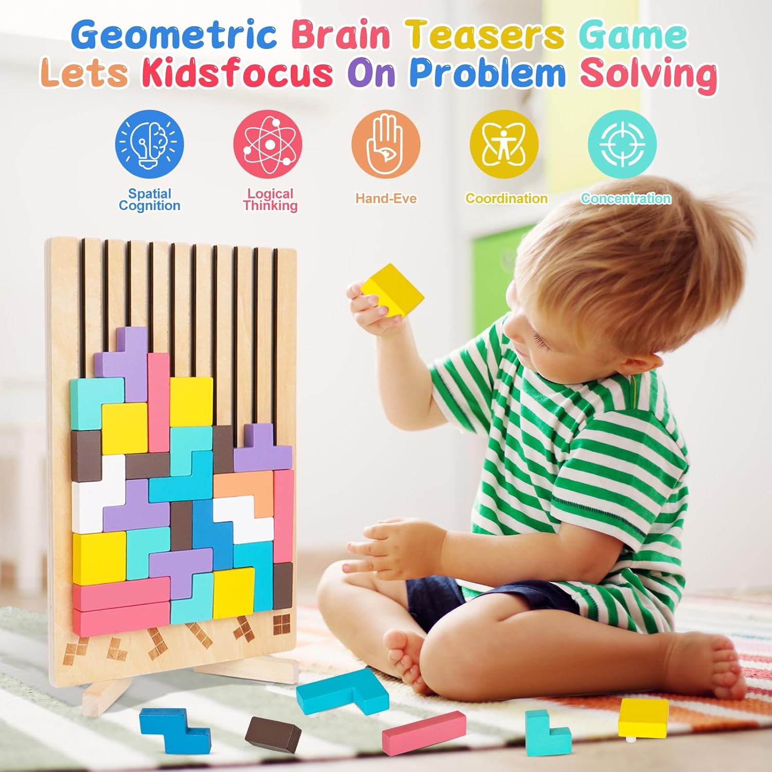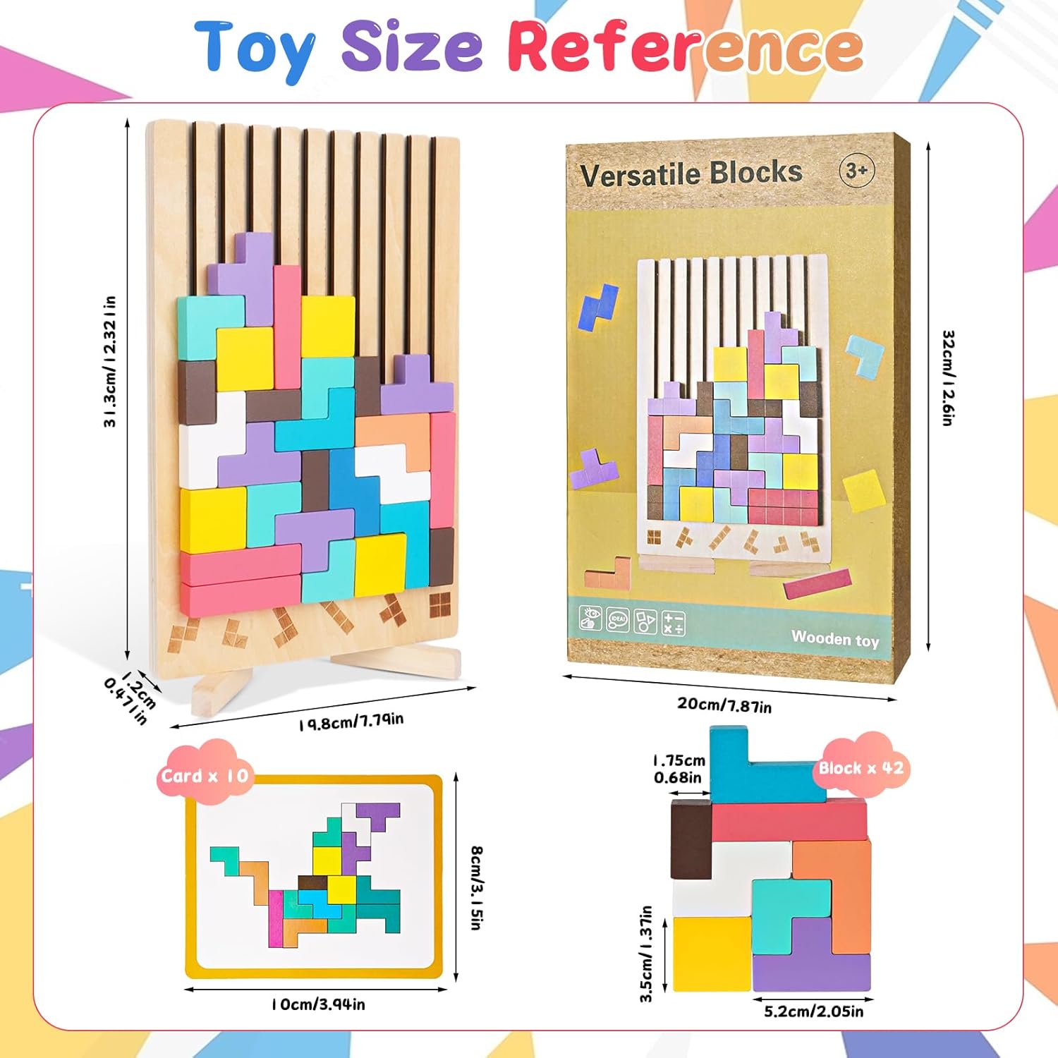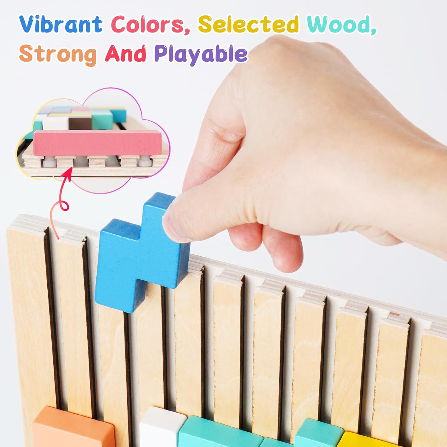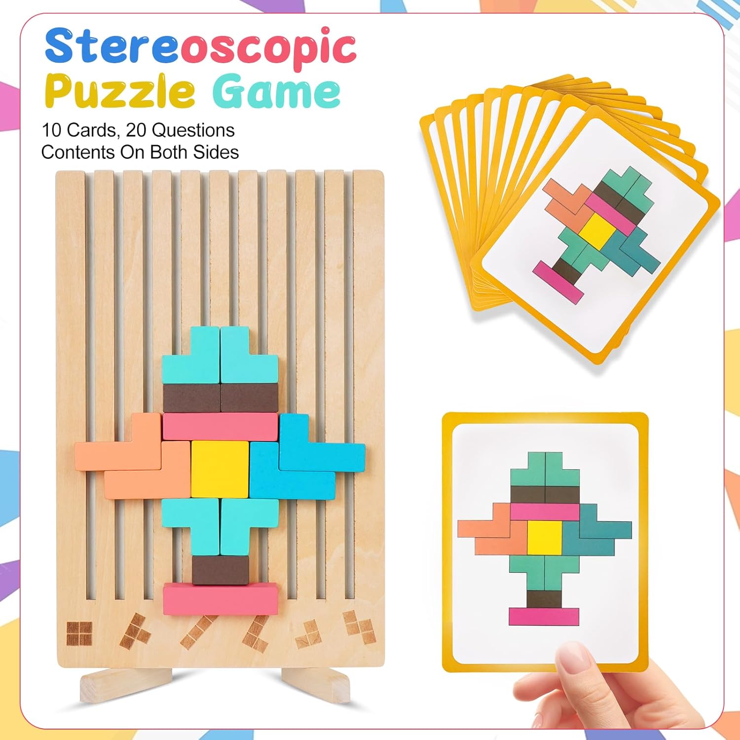 【Esperienza di Puzzle Creativa】Questo giocattolo Tetris in legno, fornito con 10 carte e 20 nuove forme in quantità sufficiente, può essere assemblato verticalmente o orizzontalmente, offrendo una varietà di opzioni di gioco. Permette ai bambini di essere più liberi quando giocano a un puzzle e di sviluppare le loro abilità in diverse dimensioni. 【Legno di Alta Qualità】Questo puzzle di legno tetris è realizzato in legno resistente, con bordi lisci, senza sbavature e una consistenza dura per anni di utilizzo, che risulta comoda da tenere in mano, rendendolo perfetto per un gioco a lungo termine. 【Colori Vivaci】Il design semplice e i colori vivaci del gioco di puzzle russo con mattoncini permettono ai bambini di riconoscere diversi colori. Con la sua combinazione di diversi colori e forme geometriche, questo puzzle in legno è un giocattolo di alta qualità per allenare la coordinazione occhio-mano, la concentrazione e il pensiero logico dei bambini, promuovendo il riconoscimento dei colori, la consapevolezza spaziale e le combinazioni creative. 【Per Tutte le Età】Questo tetris in legno per bambini dai 3 anni in su è un'ottima scelta per tutti. Il giocattolo Tetris in legno non solo aiuta i bambini a mettere in pratica le loro abilità cognitive e pratiche di base attraverso i mattoncini, ma permette anche agli adulti di rilassarsi e alleviare lo stress. È un gioco educativo che può essere apprezzato da tutta la famiglia, rafforzando il senso di vicinanza tra i membri della famiglia. 【Regalo Ideale】Questo tetris puzzle bambini, con il suo design intelligente, è un regalo ideale per bambini, amici e familiari. Questo gioco educativo è disponibile in una splendida confezione e include 42 mattoncini colorati delle dimensioni appropriate. Adatto per compleanni, battesimi, regali di Natale, regali per le feste e regali di tutti i giorni.