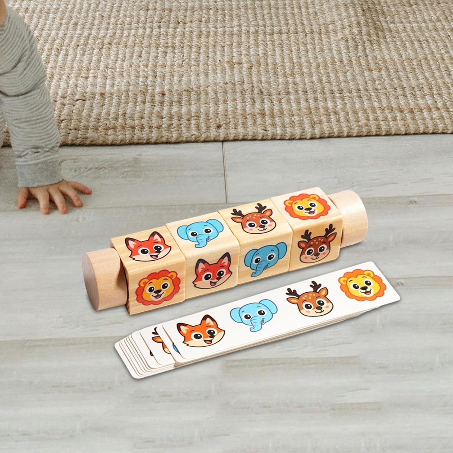 【Giocattoli educativi】 I puzzle a blocchi abbinati promuovono lo sviluppo cognitivo e il pensiero logico poiché i modelli si incastrano su blocchi rotanti. 【Materiale】 Realizzato in legno liscio di pino e betulla con bordi arrotondati, che garantisce una manipolazione sicura per le mani dei più piccoli. 【Pacchetto】 Include 10 carte fronte-retro che corrispondono ai blocchi, rendendo i giochi di abbinamento più divertenti e migliorando la coordinazione occhio-mano