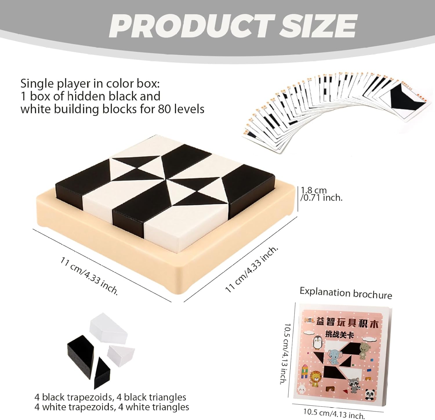 Interazione genitore-figlio: goditi del tempo di qualità con i tuoi piccoli mentre giochi a questo puzzle..È un'attività ideale per comunicare tra genitori e figli..Guarda come sviluppano capacità cognitive, concentrazione e pazienza, migliorando al tempo stesso l'efficienza dell'apprendimento. Giocattolo per il cervello: stimola l'immaginazione e la creatività con il nostro puzzle con blocchi nascosti..Migliora la coordinazione occhio-mano, le capacità motorie e il pensiero logico. Compagno perfetto e di viaggio: ideale per compleanni, vacanze e intrattenimento in movimento..Un'ottima alternativa ai dispositivi elettronici..Adatto sia a bambini che ad adulti. Gioco per tutte le età: adatto a tutte le età, il nostro puzzle con blocchi nascosti promuove il ragionamento logico e le capacità di risoluzione dei problemi..Può essere utilizzato per l'apprendimento delle figure, la pratica dell'arrangiamento e altro ancora. Materiali di qualità: realizzati in plastica resistente allo sbiadimento, garantiscono durata e sicurezza per un uso a lungo termine..I colori vivaci dei pezzi sono resistenti allo sbiadimento, offrendo un'esperienza sicura e piacevole.
