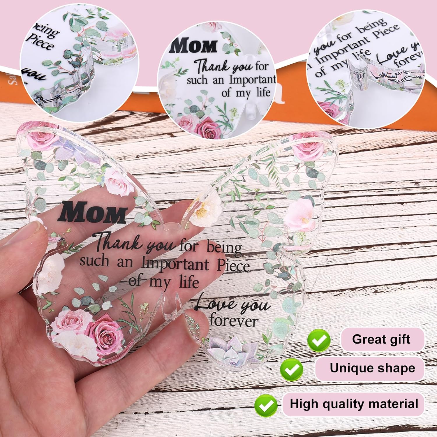 Contenuto del pacchetto: riceverai 1 pezzo di puzzle a blocchi acrilici incisi in stile speciale, rendendolo un regalo personalizzato e commovente per le madri. Materiale di qualità: il simpatico pezzo del puzzle del blocco acrilico inciso è realizzato in acrilico premium, che è forte e affidabile, non facile da rompere o sbiadire e può essere utilizzato a lungo. Regalo caldo: il pezzo del puzzle del blocco acrilico è molto bello e sarà un bel regalo per la mamma nel Ringraziamento, la festa della mamma, ecc. Lascia che si sentano felici e sorpresi. Design speciale: il puzzle del blocco acrilico è delicato e speciale.Ci sono parole piene di apprezzamento su di esso, puoi lasciare che il pezzo del puzzle del blocco acrilico mostri il tuo amore per tua madre. Bella decorazione: il regalo per la mamma può essere posizionato su libreria, scrivania, tavolino da cucina, tavolino, tavolino.Aggiunta di un'atmosfera calda per la tua casa.