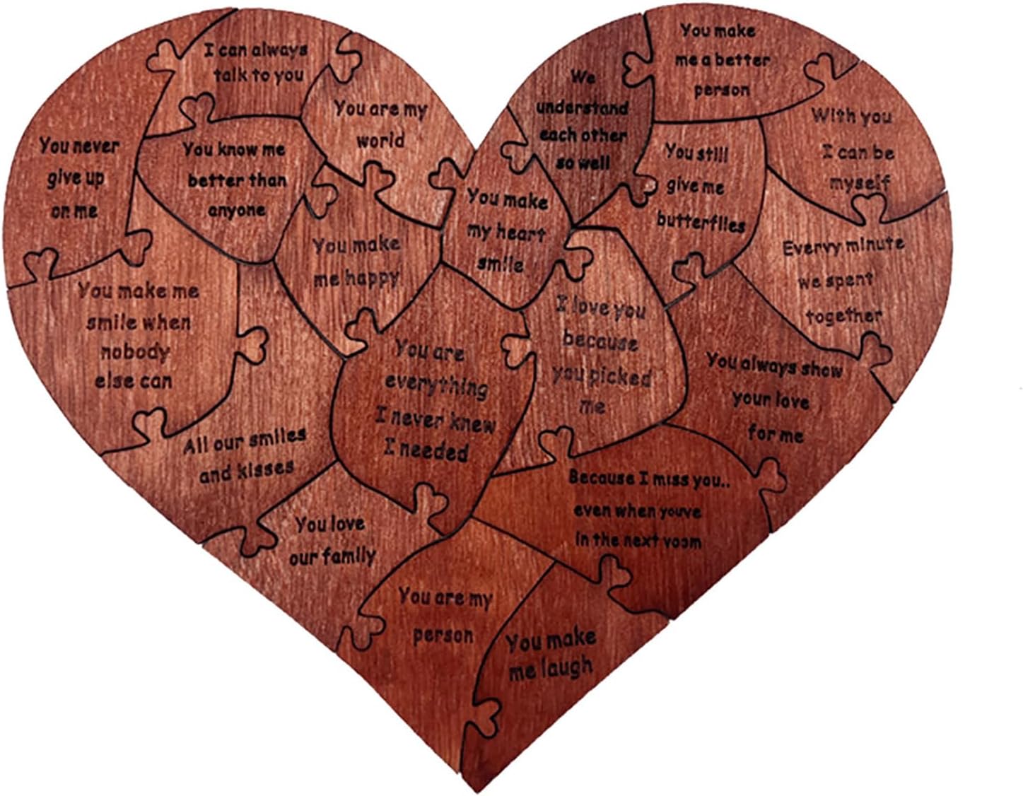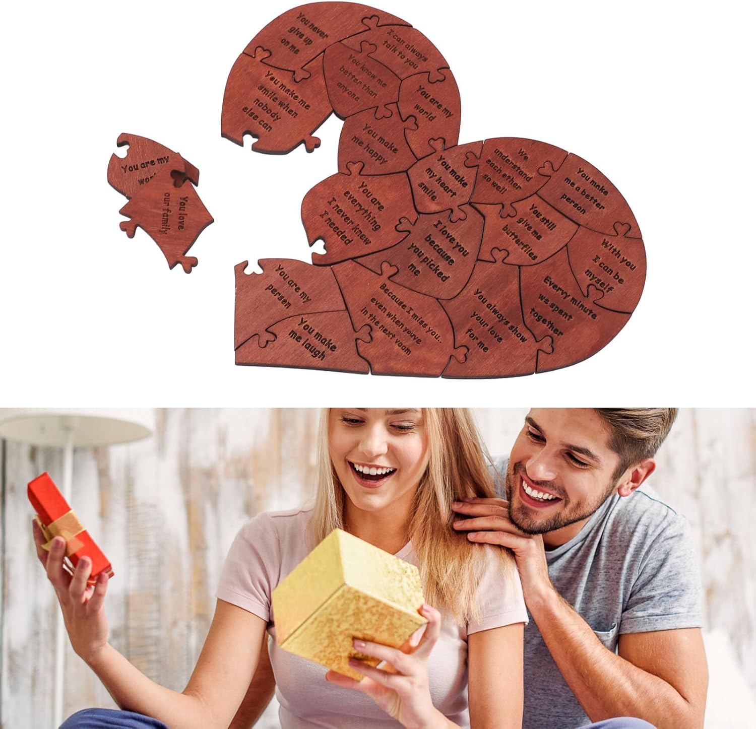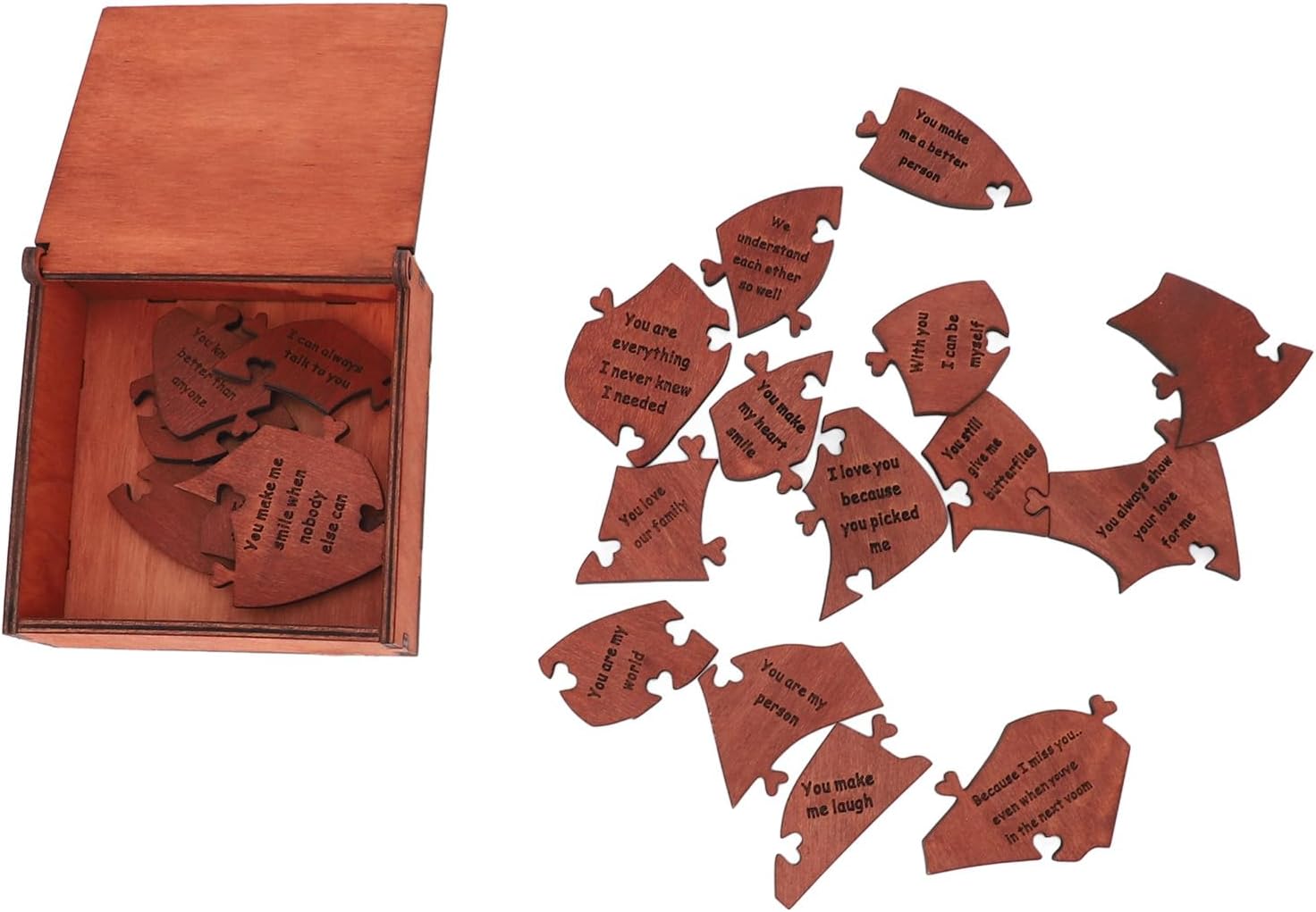 [Artigianato premium] Realizzato in legno di betulla di alta qualità, questo puzzle a forma di cuore mette in mostra l'artigianato elegante e raffinato, costruito per durare per momenti memorabili. [Conveniente stoccaggio] La scatola di legno elegante mantiene 20 pezzi sicuri e organizzati, migliorando l'esperienza romantica. [Messaggi d'amore squisiti] Ogni pezzo di puzzle presenta un messaggio d'amore speciale, che ti consente di esprimere emozioni sentite in un modo unico, per proposte, impegni, matrimoni, anniversari e San . [Momenti romantici insieme] Goditi un tempo significativo con il tuo partner che mette insieme questo design unico, creando ricordi duraturi. [Idea chic] Ideale per condividere momenti dolci e creare ricordi, questo puzzle di legno è un ponderato per occasioni speciali. [Presente unico] Il puzzle del cuore splendidamente realizzato è un simbolo di amore e devozione, rendendolo un gesto romantico per la amata. [Esperienza memorabile] I pezzi di interblocco di questo puzzle rappresentano la connessione tra gli amanti, creando una rappresentazione simbolica della tua relazione. [Espressione ponderata] Un modo significativo per trasmettere amore e affetto, il puzzle è un riflesso delle tue profonde emozioni. [ di occasione speciale] Adatto a varie celebrazioni come anniversari, matrimoni e San , questo puzzle a forma di cuore è un gesto unico e sentimentale per mostrare il tuo amore. [Momenti indimenticabili] Condividi esperienze romantiche e crea ricordi indimenticabili con la amata mentre si riunisce questo prezioso puzzle.