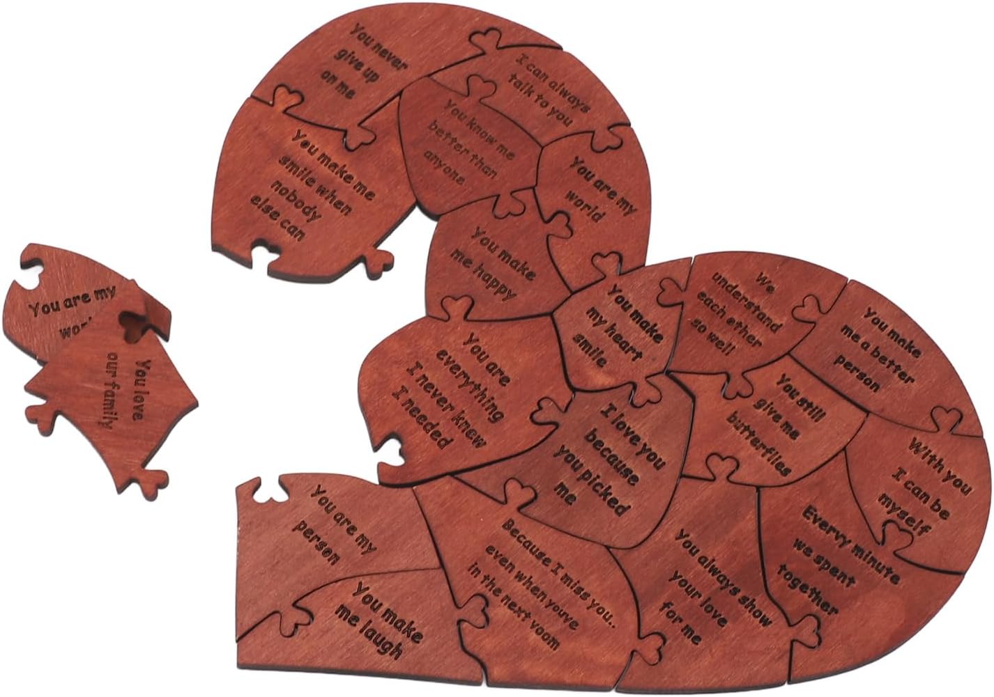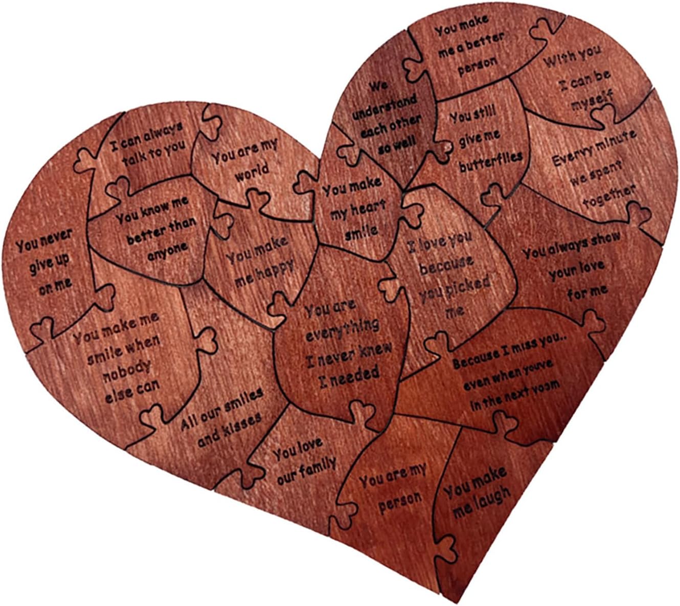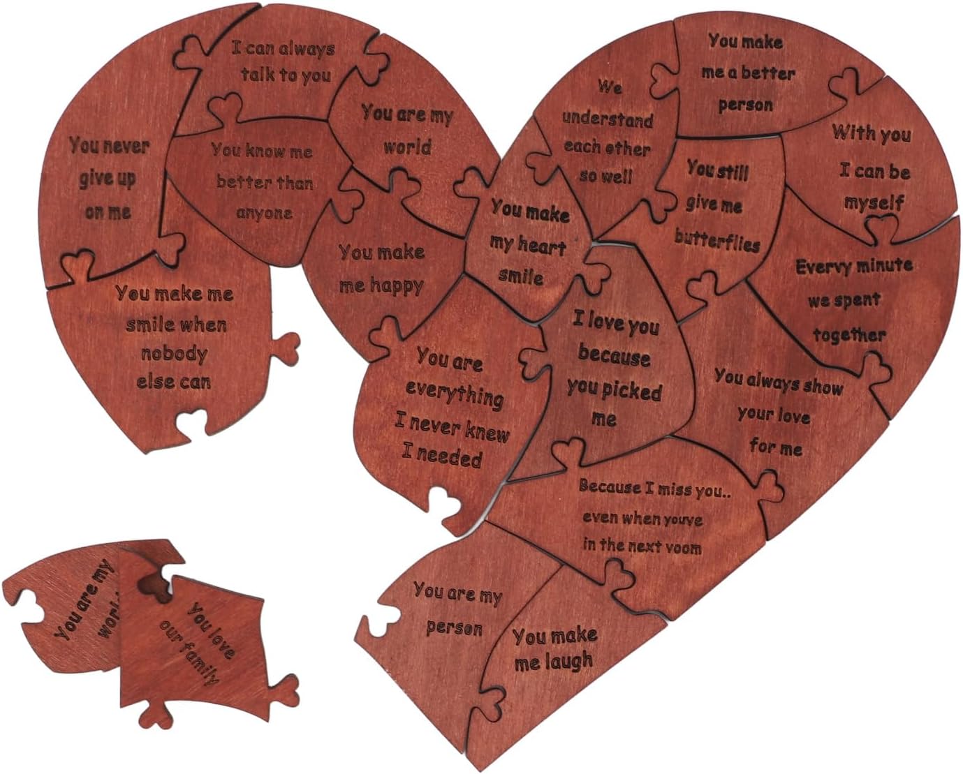 [Artigianato premium] Realizzato in legno di betulla di alta qualità, questo puzzle a forma di cuore mette in mostra l'artigianato elegante e raffinato, costruito per durare per momenti memorabili. [Conveniente stoccaggio] La scatola di legno elegante mantiene 20 pezzi sicuri e organizzati, migliorando l'esperienza romantica. [Messaggi d'amore squisiti] Ogni pezzo di puzzle presenta un messaggio d'amore speciale, che ti consente di esprimere emozioni sentite in un modo unico, per proposte, impegni, matrimoni, anniversari e San . [Momenti romantici insieme] Goditi un tempo significativo con il tuo partner che mette insieme questo design unico, creando ricordi duraturi. [Idea chic] Ideale per condividere momenti dolci e creare ricordi, questo puzzle di legno è un ponderato per occasioni speciali. [Presente unico] Il puzzle del cuore splendidamente realizzato è un simbolo di amore e devozione, rendendolo un gesto romantico per la amata. [Esperienza memorabile] I pezzi di interblocco di questo puzzle rappresentano la connessione tra gli amanti, creando una rappresentazione simbolica della tua relazione. [Espressione ponderata] Un modo significativo per trasmettere amore e affetto, il puzzle è un riflesso delle tue profonde emozioni. [ di occasione speciale] Adatto a varie celebrazioni come anniversari, matrimoni e San , questo puzzle a forma di cuore è un gesto unico e sentimentale per mostrare il tuo amore. [Momenti indimenticabili] Condividi esperienze romantiche e crea ricordi indimenticabili con la amata mentre si riunisce questo prezioso puzzle.