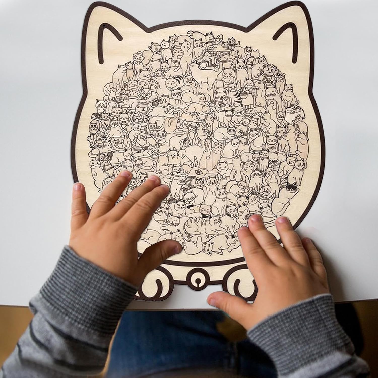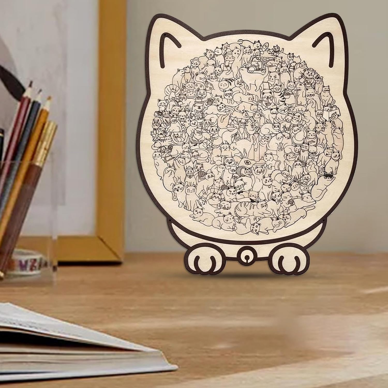 Pezzi Artistici Gatto: Con il suo design creativo e i pezzi puzzle artistici, questo puzzle dalla forma unica di gatto offre un'esperienza avvincente e coinvolgente. Ideale per rilassarsi dopo una giornata di lavoro o per aggiungere divertimento alle sfide puzzle familiari nel fine settimana. I pezzi artistici migliorano la concentrazione e la creatività, rendendo ogni sessione di gioco un momento piacevole e rigenerante per tutta la famiglia. Materiali di Lunga Vita: I puzzle per gatti per adulti utilizzano legno di alta qualità con una texture ecologica, fornendo bordi lisci e sicuri che assicurano durabilità e soddisfazione 'utente, migliorando i momenti di concentrazione e divertimento sia giocati da soli che condivisi con la famiglia, in contesti domestici o ricreativi. Regalo Eccellente e Coinvolgente: Progettato per coinvolgere attivamente i gatti, questo puzzle giocattolo si trasforma in un pezzo d'arte espositivo, contribuendo al calore domestico fondendo funzionalità e decorazione. Il suo appeal decorativo e da collezione lo rende una scelta di regalo ideale, arricchendo le case con creatività e momenti condivisi tra animali domestici e proprietari, mentre aggiunge un tocco elegante agli interni e promuove l'interazione giocosa in setting quotidiani. Design di Taglio Irregolare: Con 135 pezzi meticolosamente realizzati, questi puzzle di gatto combinano un design di taglio irregolare e una difficoltà avanzata per la mente, promuovendo intrattenimento e soddisfazione durante il completamento di design intricati. Un'esperienza coinvolgente che le capacità cognitive e offre momenti di svago piacevoli per chi ama i rompicapi complessi. Passatempo Calmo e Godibile: I puzzle per gatti un'atmosfera rilassante con il loro design avvincente, aiutandoti a immergerti in un'attività di concentrazione che riduce lo stress e porta un godimento calmante del puzzle in qualsiasi giornata comoda trascorsa in casa, offrendo un'esperienza di gioco e piacevole per un di qualità dedicato al benessere mentale.