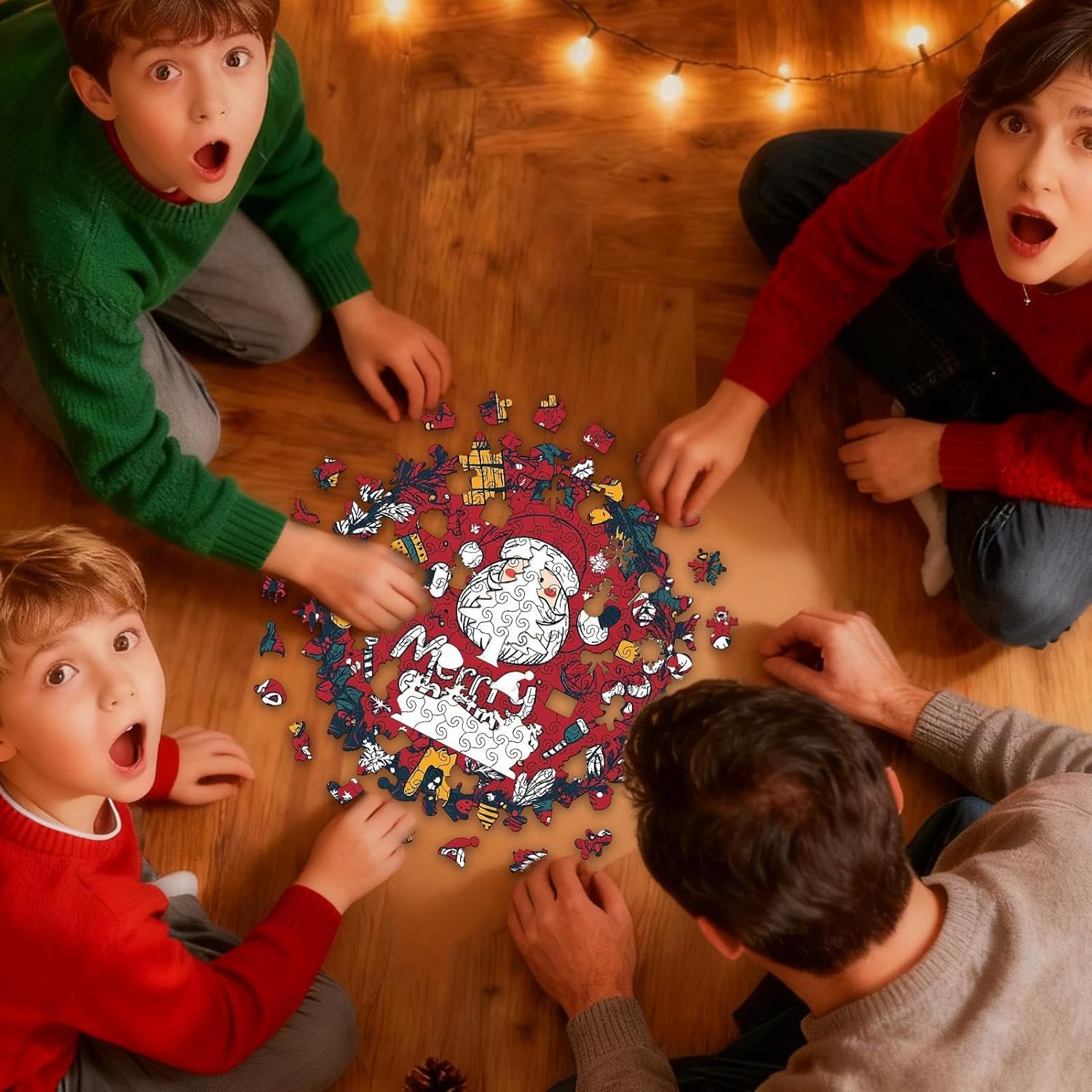 Puzzle con Texture Liscia: La texture calda e liscia di questi puzzle per bambini migliora il comfort tattile, rendendoli sicuri e piacevoli da maneggiare, mentre resistono all'usura per un uso prolungato durante momenti di apprendimento creativo o di familiare. Questa finitura levigata assicura una presa confortevole, perfetta per giochi interattivi che promuovono la coordinazione e la socializzazione, in contesti come il gioco in famiglia o le attività ricreative. Regalo Festivo : Progettato per trasmettere amore e cura, il puzzle per adulti è un'opzione regalo versatile per ragazzi, ragazze e bambini, arricchendo l'allegria delle feste durante eventi compleanni, Natale, Capodanno o altre celebrazioni stagionali gioiose, promuovendo e felicità in ogni occasione speciale e memorabile. Innovazione Artistica Puzzle: Progettati per un'esperienza puzzle immersiva, questi puzzle i modelli tipici con irregolarità ispirate alla natura come rami di pino e bacche, ottenute attraverso metodi di taglio meticolosi. Forniscono forme di pezzi variate ideali per rilassarsi da soli o condividere occasioni gioiose, incoraggiando la creatività e il divertimento con design artistici e pezzi distintivi per momenti memorabili. Creatore di Ricordi di Vacanza: I puzzle per adulti offrono un'opportunità speciale per le famiglie di legare attraverso giochi di enigma, favorendo la pazienza e la collaborazione durante le occasioni festive e trasformando momenti comuni in ricordi preziosi delle vacanze mediante attività di gruppo coinvolgenti. Questo creatore di ricordi è ideale per rafforzare i legami familiari in un'atmosfera e collaborativa, promuovendo un di tà senza schermo che unisce grandi e piccini Design Festivo del Puzzle: Il puzzle mostra un'elegante ghirlanda natalizia combinata con dettagli festivi senza come Babbo Natale e rami di pino, creando un'visivamente accattivante che esalta l'atmosfera calda e invitante della tua casa quando esposto in occasioni speciali o festività. I colori vivaci e i motivi tradizionali lo rendono per decorare gli interni domestici, aggiungendo un tocco festivo ed elegante a soggiorni o aree di intrattenimento durante eventi natalizi
