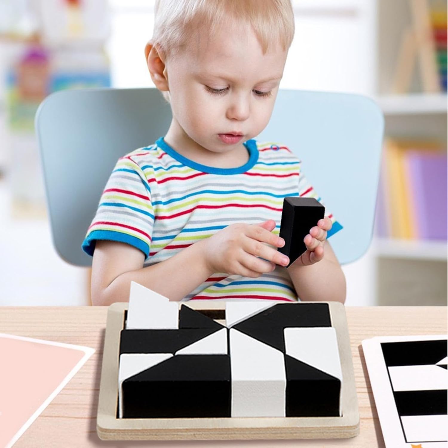 Materiale selezionato: il materiale in legno spesso e resistente utilizzato nei puzzle a per bambini è accuratamente selezionato per le sue proprietà naturali ed ecologiche. I lisci sono sicuri per far giocare i bambini e incoraggiano la creatività e l'immaginazione. Semplici da comprendere: questi puzzle a consentono ai bambini di sceglierli e posizionarli facilmente, con 8 trapezi e 8 triangoli che una varietà di modelli. Queste forme aiutano nel riconoscimento della forma e sono abbastanza spesse per le mani dei più piccoli Vantaggio educativo: coinvolgi la mente di tuo figlio con questo avvincente puzzle a . Man mano che risolvono ogni enigma, la coordinazione occhio-mano, la risoluzione dei problemi e la creatività miglioreranno. Regalo pratico: questi puzzle a per bambini sono un ottimo regalo per qualsiasi vacanza o compleanno speciale. I tuoi bambini adoreranno giocare con questi puzzle colorati e resistenti il giorno del Ringraziamento, Natale o qualsiasi occasione. genitore-figlio: crea un forte tra genitori e figli con i puzzle a . I genitori possono guidare i propri figli nella risoluzione di sfide creative e logiche, promuovendo l'interazione genitore-figlio