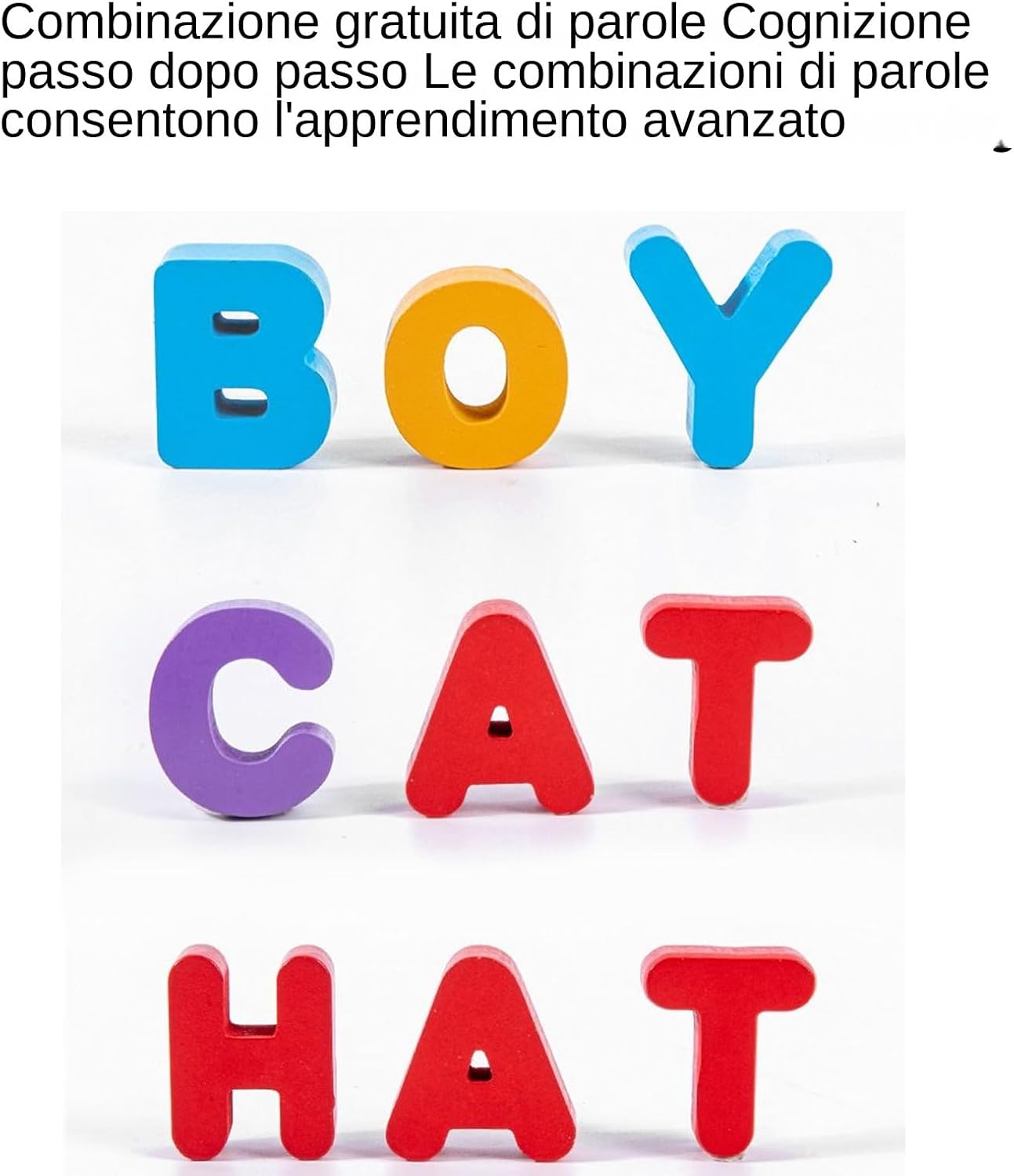 Esplorazione Lettere Interattiva: Design con illustrazioni animali colorate e di corrispondenza alfabetica integra abilità visive e tattili. Approccio coinvolgente che favorisce lo sviluppo del linguaggio e arricchisce il lessico in modo spontaneo. Crescita Armoniosa: Attività progettate per sviluppare in modo integrato processi creativi, stimolare le funzioni cerebrali e perfezionare i gesti precisi con coordinazione . Struttura Robustezza: Design compatto con incastri precisi realizzato in legno stagionato, assicura stabilità durante il montaggio e smontaggio ripetuto e lettere Maneggevolezza Ottimale: Struttura compatta e peso ridotto rendono questo gioco didattico per l'uso quotidiano. Soluzione pratica per genitori e insegnanti che necessitano materiale formativo facilmente trasportabile tra diversi ambienti educativi Regalo Ideale: Realizzato con materiali resistenti e sicuri, promuove l'apprendimento 'alfabeto attraverso il gioco interattivo. Scelta perfetta per natale, pasqua o feste di compleanno, unisce utilità pratica a momenti di qualità in famiglia