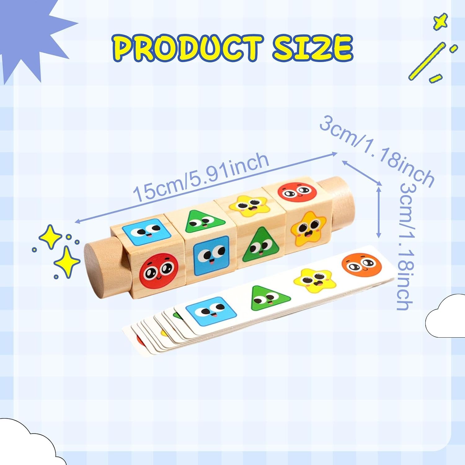 【Materiale】Realizzato in legno liscio di pino e betulla con bordi arrotondati, garantendo una manipolazione sicura per le mani dei più piccoli. 【Portatile】 I giocattoli rotanti con mattoncini presentano un design compatto e portatile, ideale per giocare a casa, a terra o per attività interattive genitore-figlio. 【Pacchetto】 Include 10 carte fronte-retro che corrispondono ai blocchi, rendendo i giochi di abbinamento più divertenti e migliorando la coordinazione occhio-mano