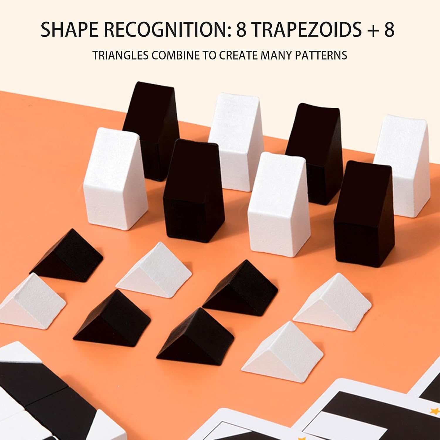 Materiale sicuro: i puzzle a per bambini sono realizzati in materiale di legno di alta qualità, spesso e durevole, oltre che naturale e sano. I di legno sono lisci e sicuri per far giocare i bambini Semplici da comprendere: questi puzzle a consentono ai bambini di sceglierli e posizionarli facilmente, con 8 trapezi e 8 triangoli che una varietà di modelli. Queste forme aiutano nel riconoscimento della forma e sono abbastanza spesse per le mani dei più piccoli Divertimento per potenziare il cervello: questo puzzle a è un fantastico giocattolo educativo che può migliorare la coordinazione occhio-mano, la risoluzione dei problemi e la creatività. Indurrà i tuoi figli a mettere da parte i loro dispositivi elettronici e a potenziare il loro cervello mentre giocano. Regalo adatto: sorprendi i tuoi bambini nella loro occasione speciale con puzzle a per bambini. Perfetti per i compleanni, il Ringraziamento e il Natale, questi puzzle stimolano le capacità cognitive e motorie incoraggiando al stesso la creatività e l'immaginazione. Interattività genitore-figlio: blocca i puzzle per i bambini che favoriscono il familiare attraverso il gioco interattivo. I genitori possono guidare i propri figli nella risoluzione di sfide creative e logiche, promuovendo una calda interazione e comunicazione.
