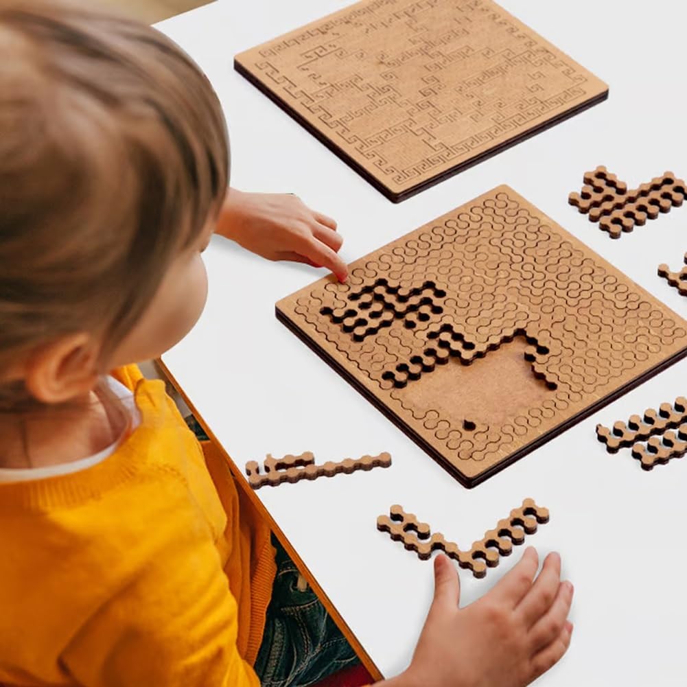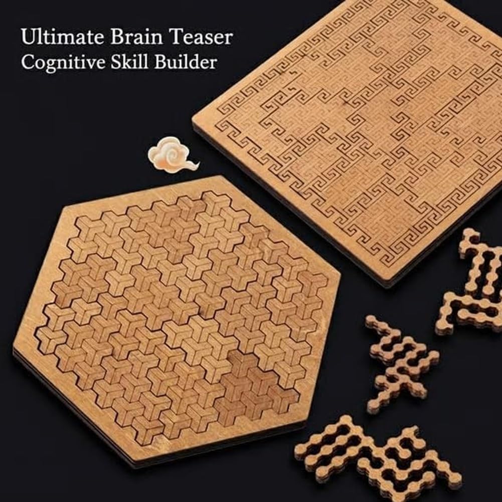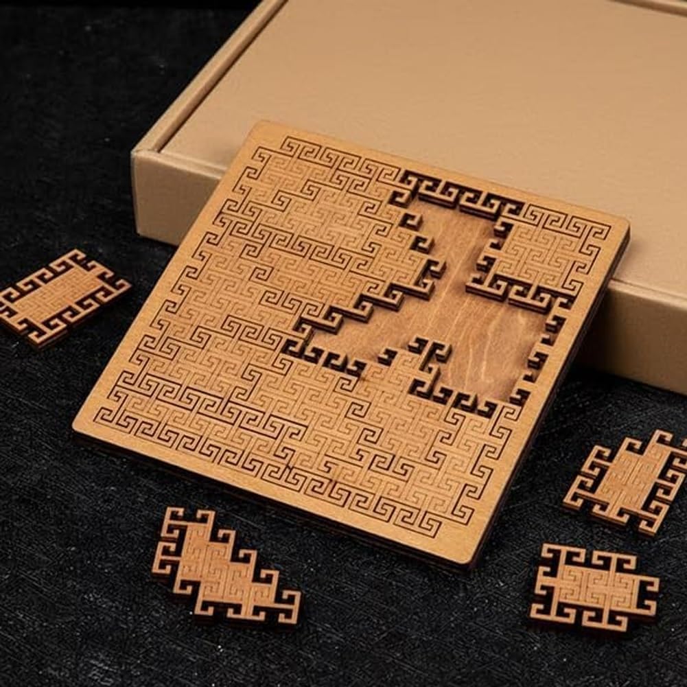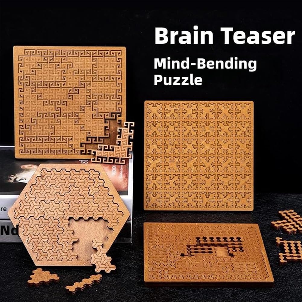 Esperienza puzzle avvincente: immergiti nel mondo dei puzzle frattali, dove ogni pezzo unico e irregolare del puzzle offre un livello di difficoltà impossibile che metterà alla prova le tue capacità di risoluzione dei problemi e garantirà ore di divertimento rompicapo. Design creativo del labirinto: questi puzzle in legno per adulti presentano un caratteristico modello di labirinto e sfidano le tue capacità di pensiero con la loro complessa struttura di linee non ripetitive ispirata alle curve di Hilbert per un'esperienza puzzle avvincente. Materiali di alta qualità: i nostri sofisticati puzzle sono realizzati in legno di alta qualità e presentano impiallacciature lisce e marroni con uno spessore di 1,27 cm. Ogni pezzo del puzzle misura 13,7 × 12 cm ed è dipinto di nero intenso sul retro per un migliore orientamento. Sollievo dallo stress e relax: risolvere questi impegnativi puzzle in legno non solo stimola il cervello, ma è anche un ottimo modo per alleviare lo stress e trovare la pace. È quindi ideale per attività familiari condivise o momenti di tranquilla riflessione. Perfetto per tutti i livelli di abilità: che tu sia un puzzle esperto o un principiante, i nostri puzzle con vassoio frattale sono adatti a tutte le età e livelli di abilità, fornendo una sfida gratificante che ti farà divertire e coinvolgere indipendentemente dal tuo livello di abilità.