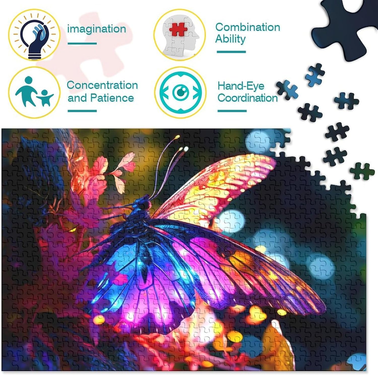 🌸Benefici del gioco dei puzzle: Momenti quotidiani di consapevolezza | Migliora la memoria | Allevia lo stress | Risolve i problemi | Migliora la creatività | Abilità sociali | Migliore collaborazione | Trascorrete momenti divertenti in famiglia. Il puzzle Colorful Butterfly6 è uno dei giochi per adulti per godersi il tempo libero con la famiglia e gli amici. 🌸Materiale di alta qualità: I puzzle da 1000 pezzi sono realizzati in cartone/legno di alta qualità riciclabile al 100%, robusto e resistente alla flessione, per un'esperienza soddisfacente per gli amanti dei puzzle. Consigliato per adulti e bambini dai 14 anni in su. 🌸Dimensioni del prodotto: Puzzle di carta da 1000 pezzi / 26 cm * 38 cm; puzzle di legno da 1000 pezzi / 50 cm * 75 cm; Questo puzzle Colorful Butterfly6 è prodotto con tecnologia di stampa premium avanzata. Ogni pezzo del puzzle è tagliato in una forma unica per fornire un ulteriore livello di autocontrollo e concentrazione, può ispirare efficacemente il pensiero delle persone, allenare il loro pensiero, giudizio e pazienza. 🌸Regalo perfetto: i puzzle per adulti di alta qualità sono un'ottima scelta per bambini, amanti, amici, familiari, coppie, regali di Natale, Ringraziamento, San Valentino, Pasqua, regali di anniversario o altre giornate meravigliose. Puoi goderti il tempo libero con la tua famiglia e i tuoi amici, facendoti sentire più vicino. 🌸Garanzia di soddisfazione al 100%: amerai i puzzle da 1000 pezzi ben progettati, alla moda ed eleganti. Se hai domande sui puzzle o hai ricevuto un pezzo mancante del puzzle, puoi contattarci in qualsiasi momento, ti offriremo un ottimo servizio.