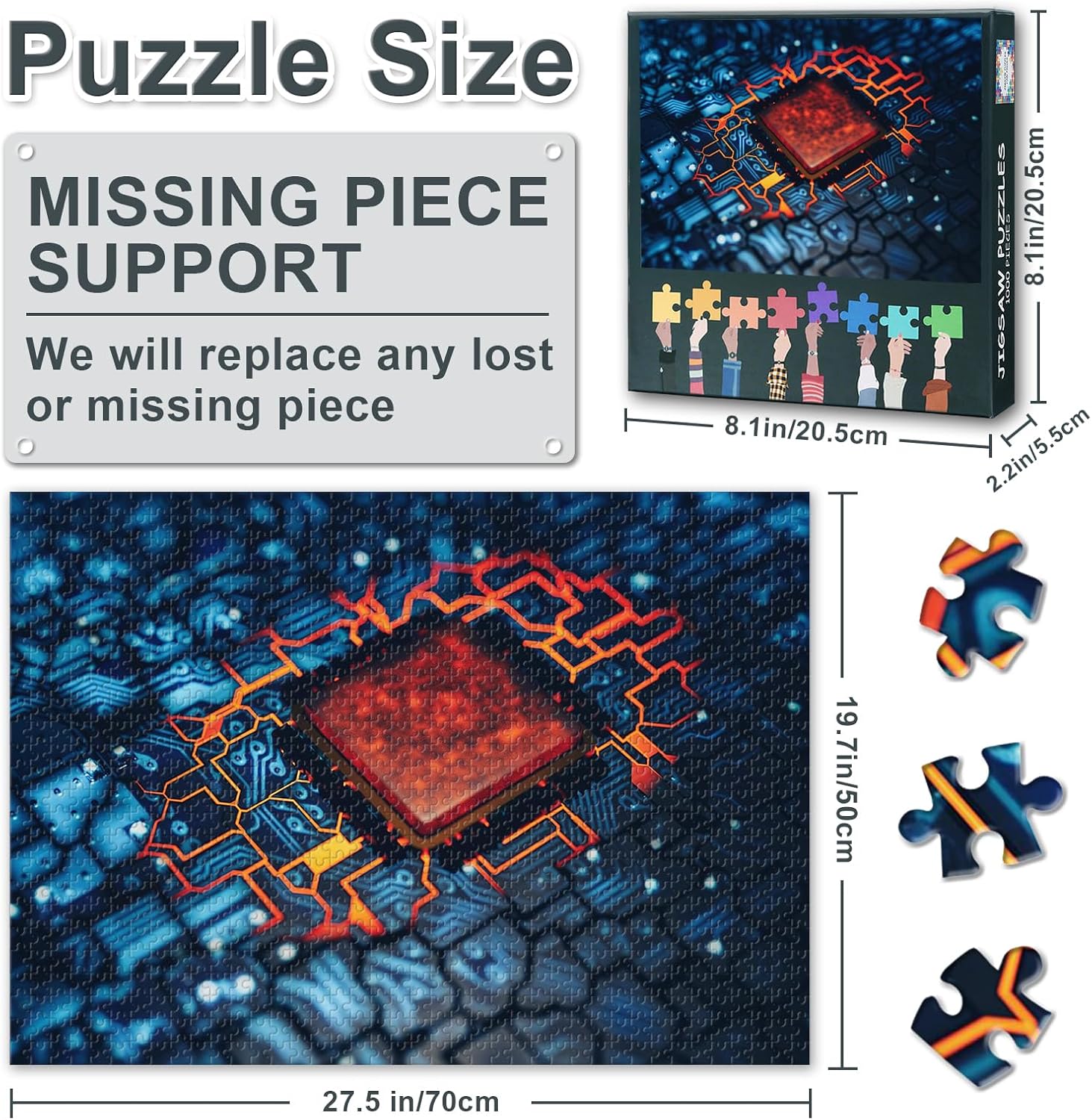 Dimensioni finite: 27,5 x 19,7 pollici (70 x 50 cm). Il puzzle viene fornito in una confezione squisita con 1000 pezzi e un poster di copertina A4. Questo poster serve come istruzioni per assemblare il puzzle. Materiale di alta qualità: i puzzle sono realizzati in cartone ecologico e lavorati utilizzando la moderna tecnologia di taglio laser. Ogni puzzle per adulti da 1000 pezzi ha bordi lisci e sicuri ed è adatto a tutte le età. Gioco di squadra: ideale per i legami familiari: questo puzzle è adatto a tutte le età e incoraggia il lavoro di squadra, la pazienza e le capacità di risoluzione dei problemi. È un'ottima scelta per trascorrere il tempo libero insieme e creare ricordi duraturi. REGALO UNICO: una scelta meravigliosa per compleanni, vacanze, Halloween, Ringraziamento, Natale o occasioni speciali. Questo puzzle è un regalo memorabile e premuroso che può essere apprezzato da tutte le età. Elegante decorazione murale: dopo il montaggio è possibile esporre il puzzle sulla parete. È una testimonianza del tuo successo e un'esposizione della tua creatività personale che aggiungerà un tocco elegante al tuo spazio.