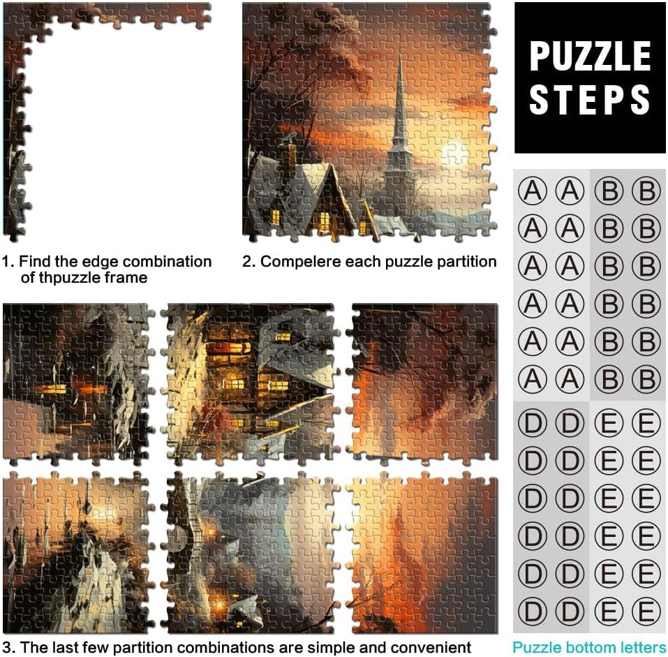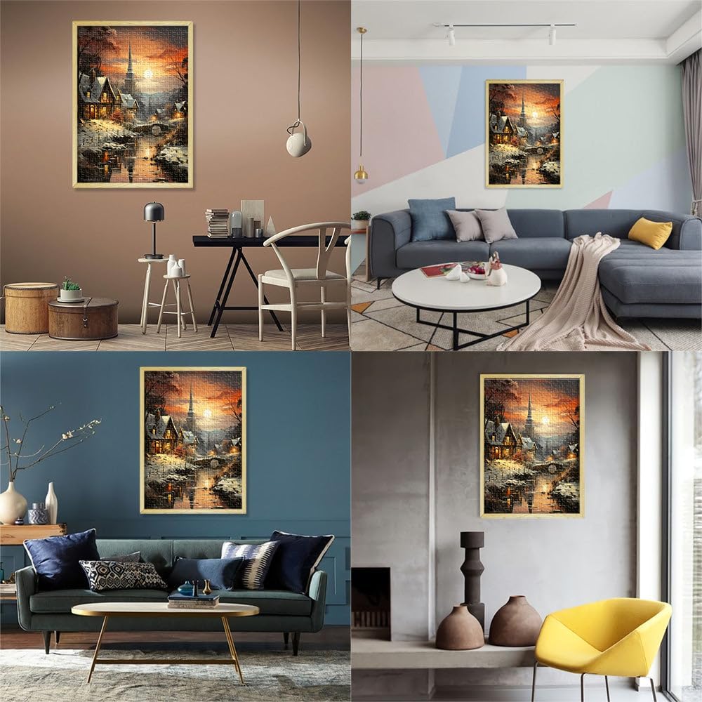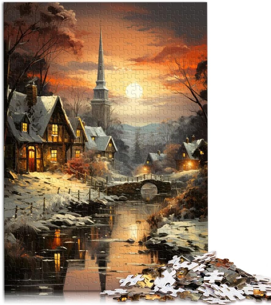 Puzzle da 1000 pezzi con taglio di precisione Crepuscolo nel villaggio invernale Fatto di legno per età 14+ per la decorazione della casa Idee regalo misurare:50x75cm