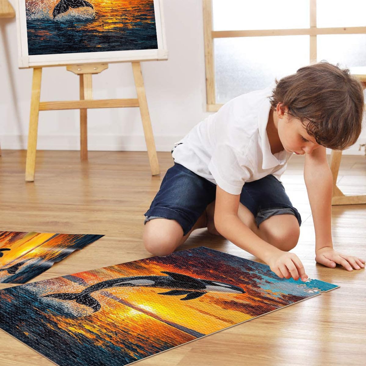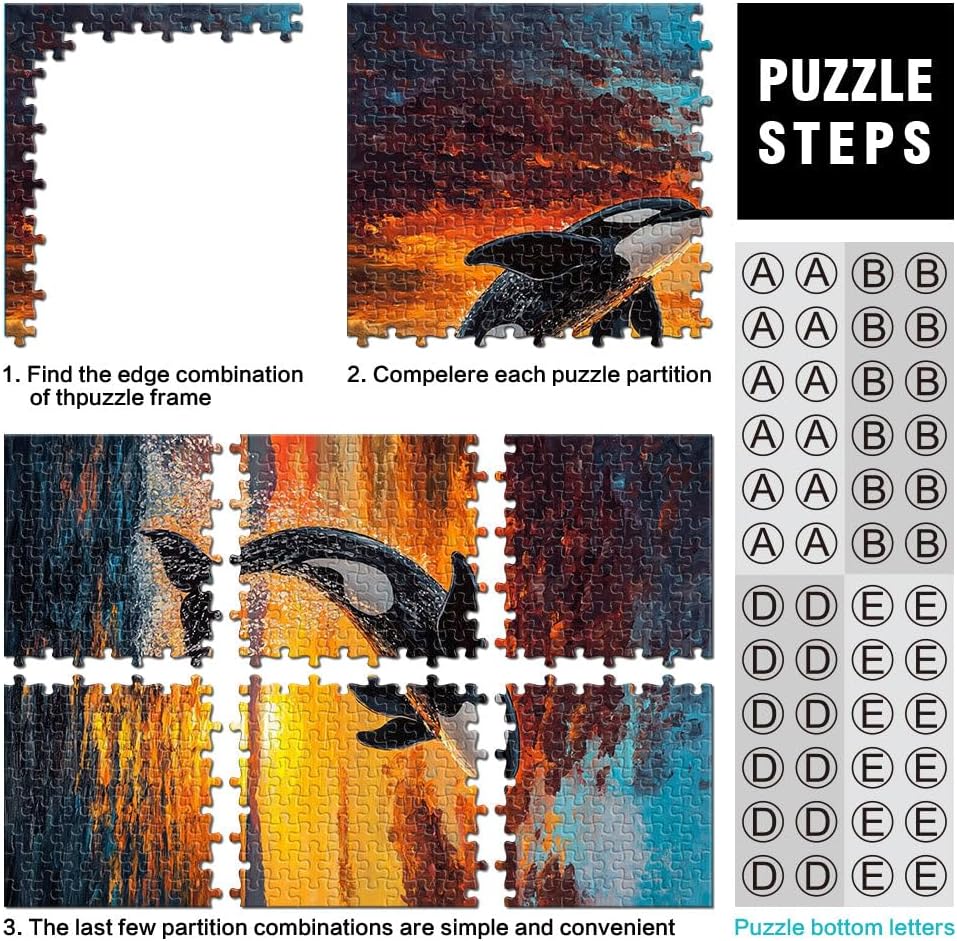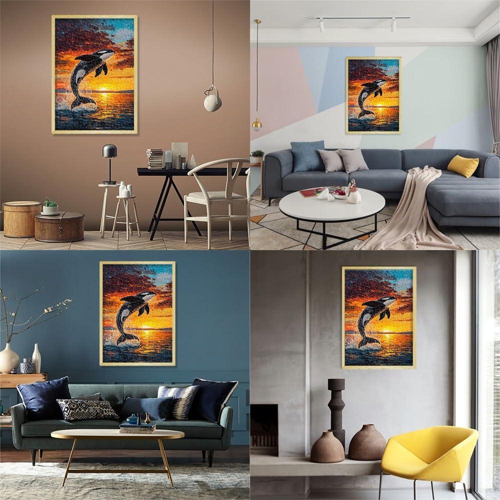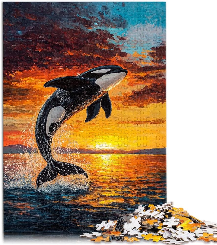 Puzzle da 1000 pezzi con taglio di precisione orca al tramonto Fatto di legno per età 14+ Decorazione perfetta Regalo di opere d'arte misurare:50x75cm