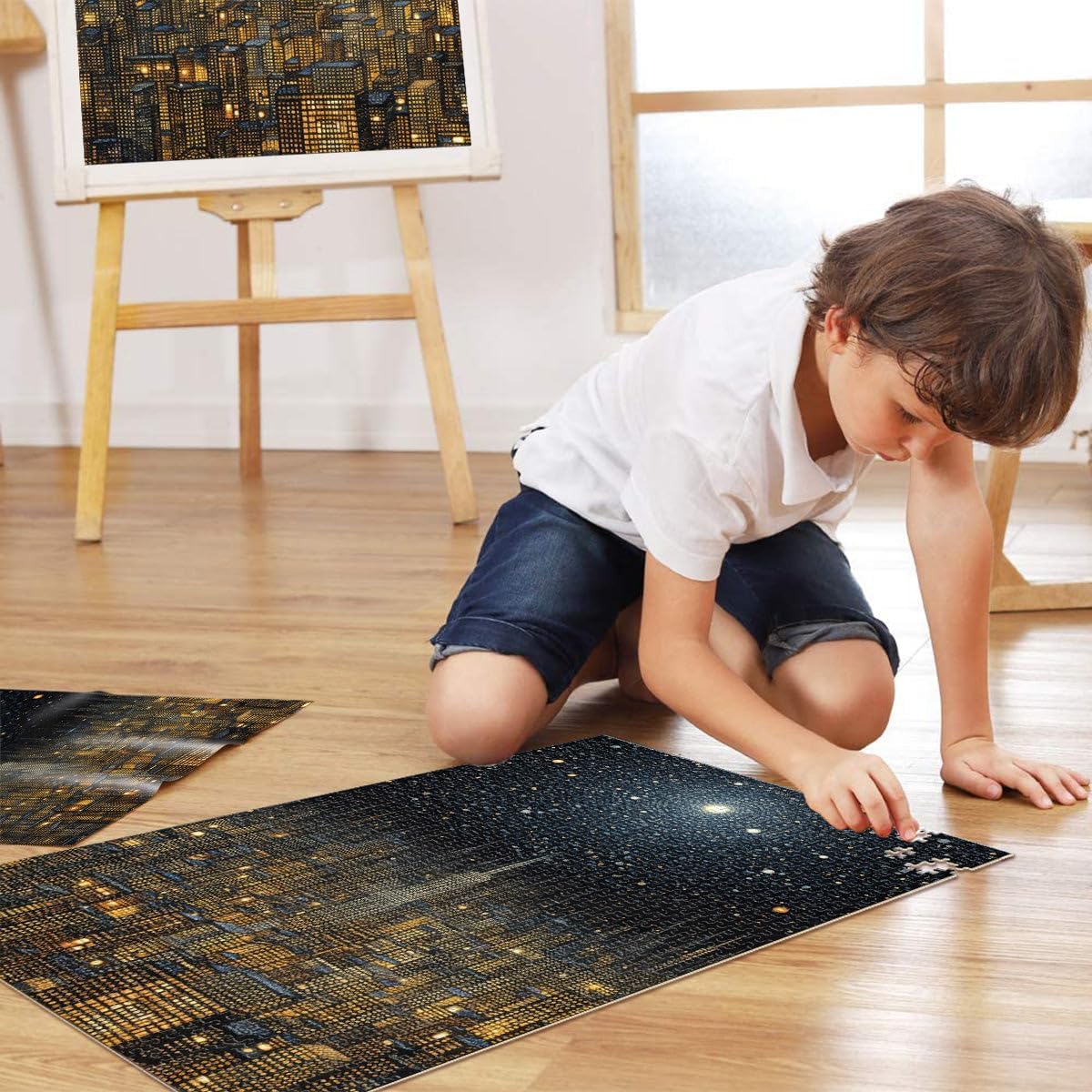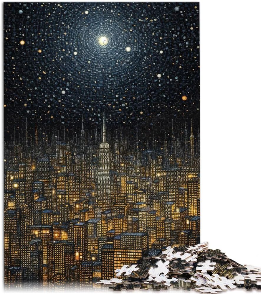 Puzzle da 1000 pezzi con taglio di precisione Paesaggio urbano notturno con stelle Fatto di legno per età 14+ Gioco di puzzle Offerti come regali per tutta la famiglia misurare:50x75cm