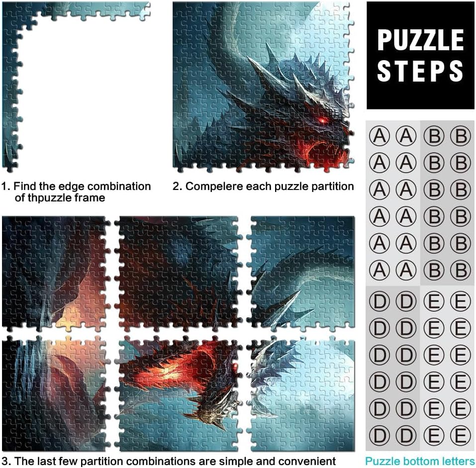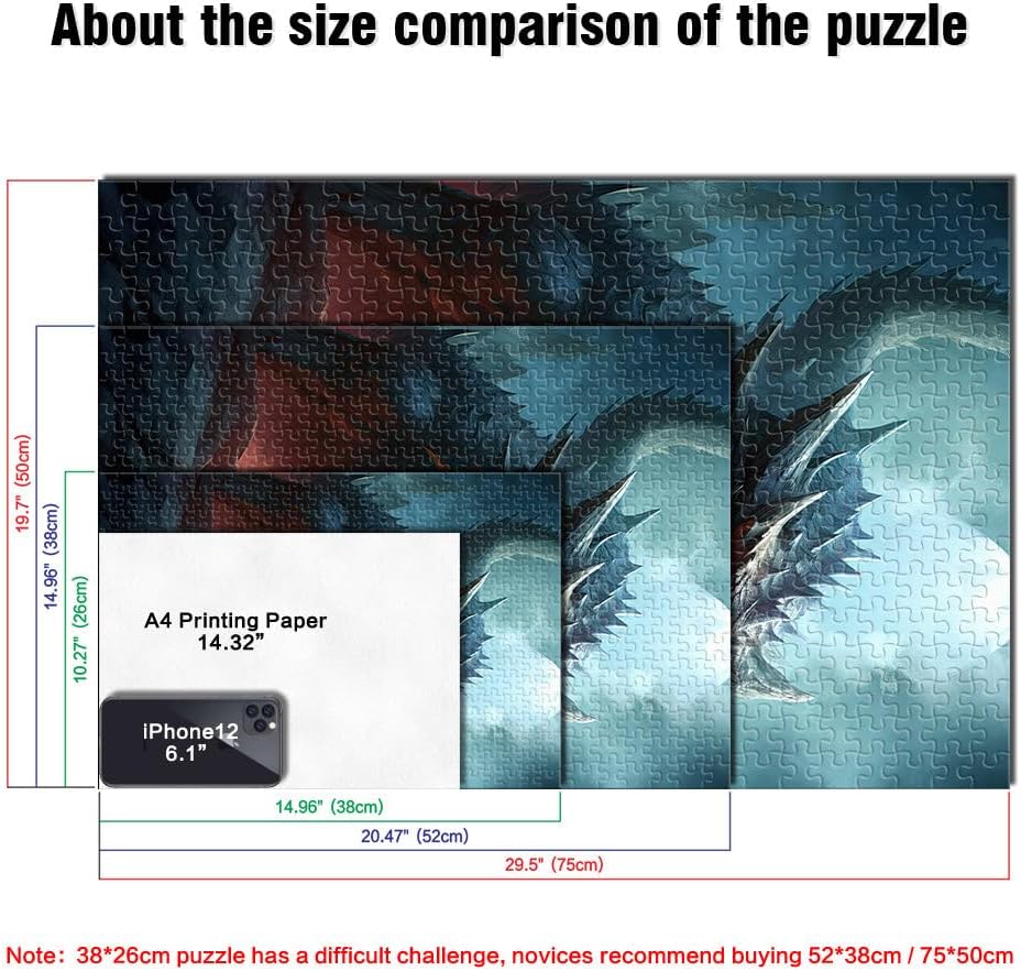 Puzzle da 1000 pezzi con taglio di precisione “ Poster del drago” Fatto di carta,per età 14+ Giocattolo educativo antistress Regali difficili per donne e uomini。misurare:38x52cm/14.96x20.47pollice