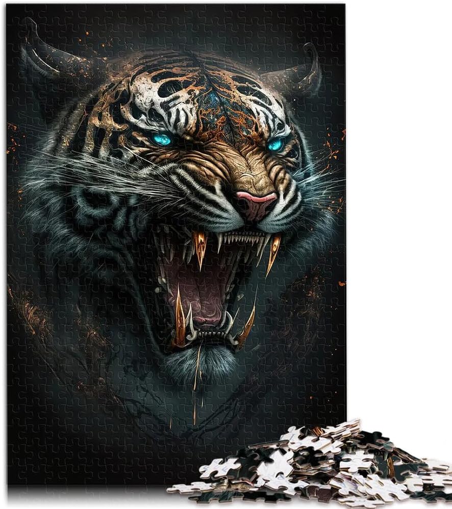 Puzzle da 1000 pezzi con taglio di precisione Tigre che ruggisce feroce Fatto di legno per età 14+ Giocattoli educativi per l'apprendimento Giochi per famiglie Giochi Giocattoli Regalo