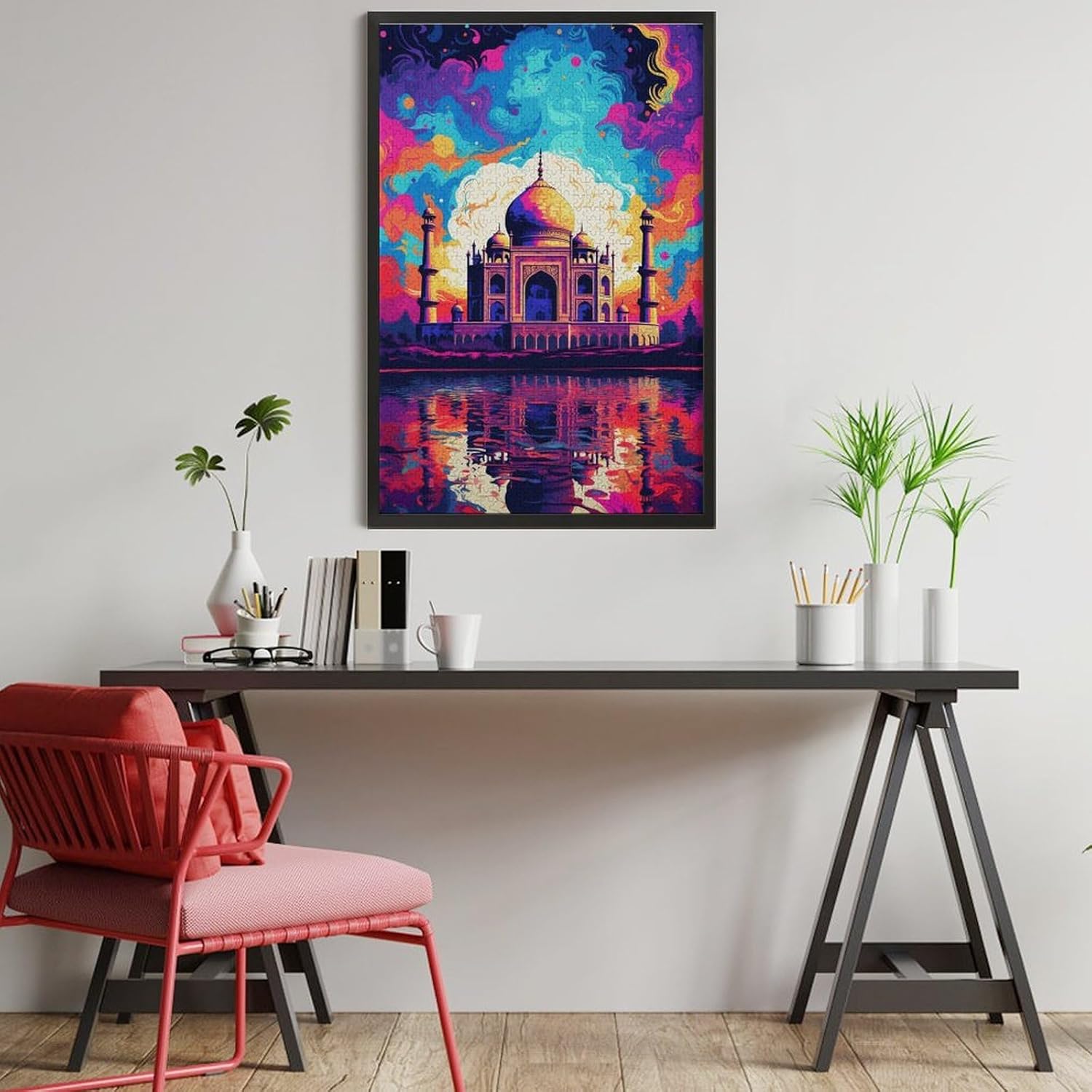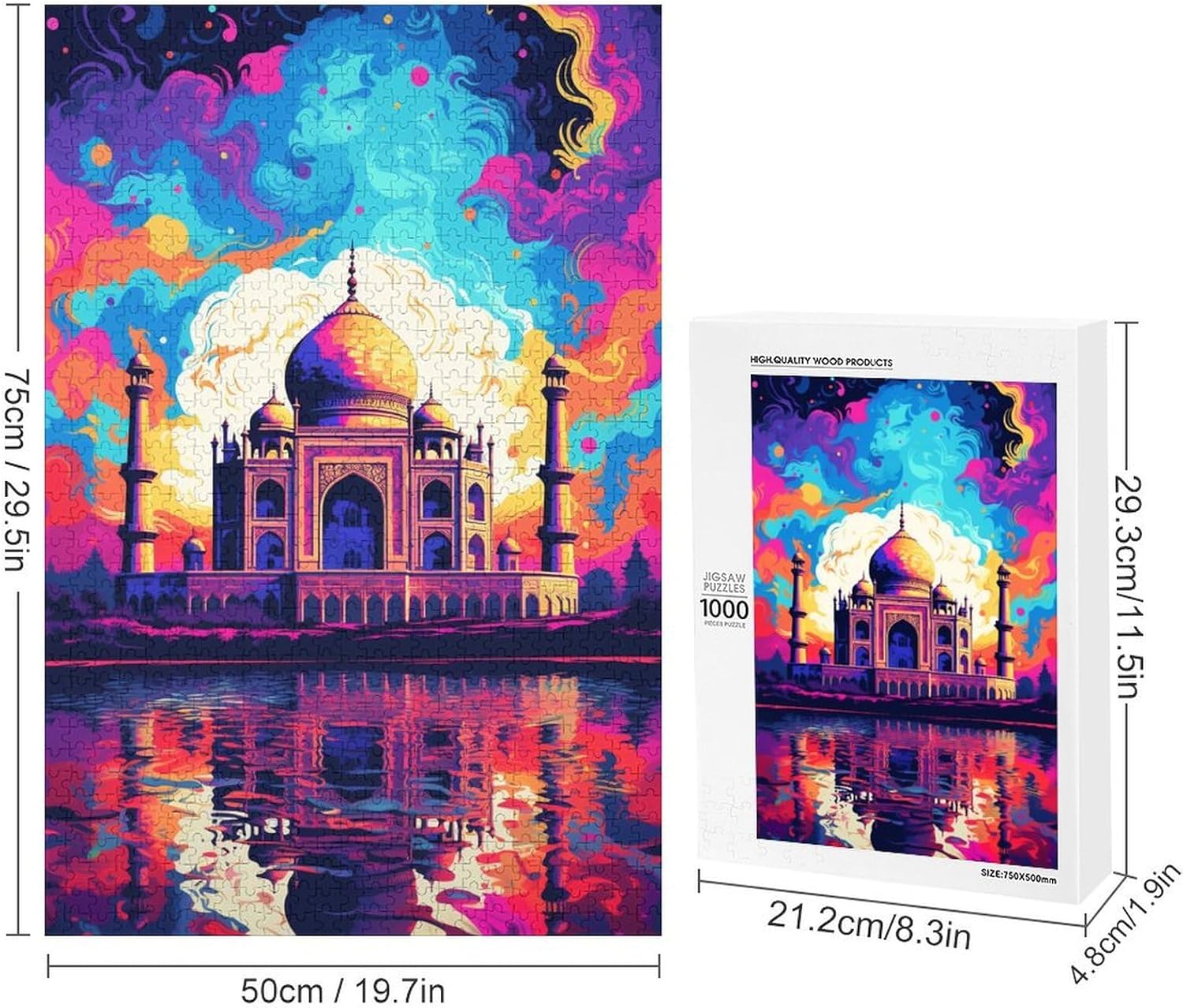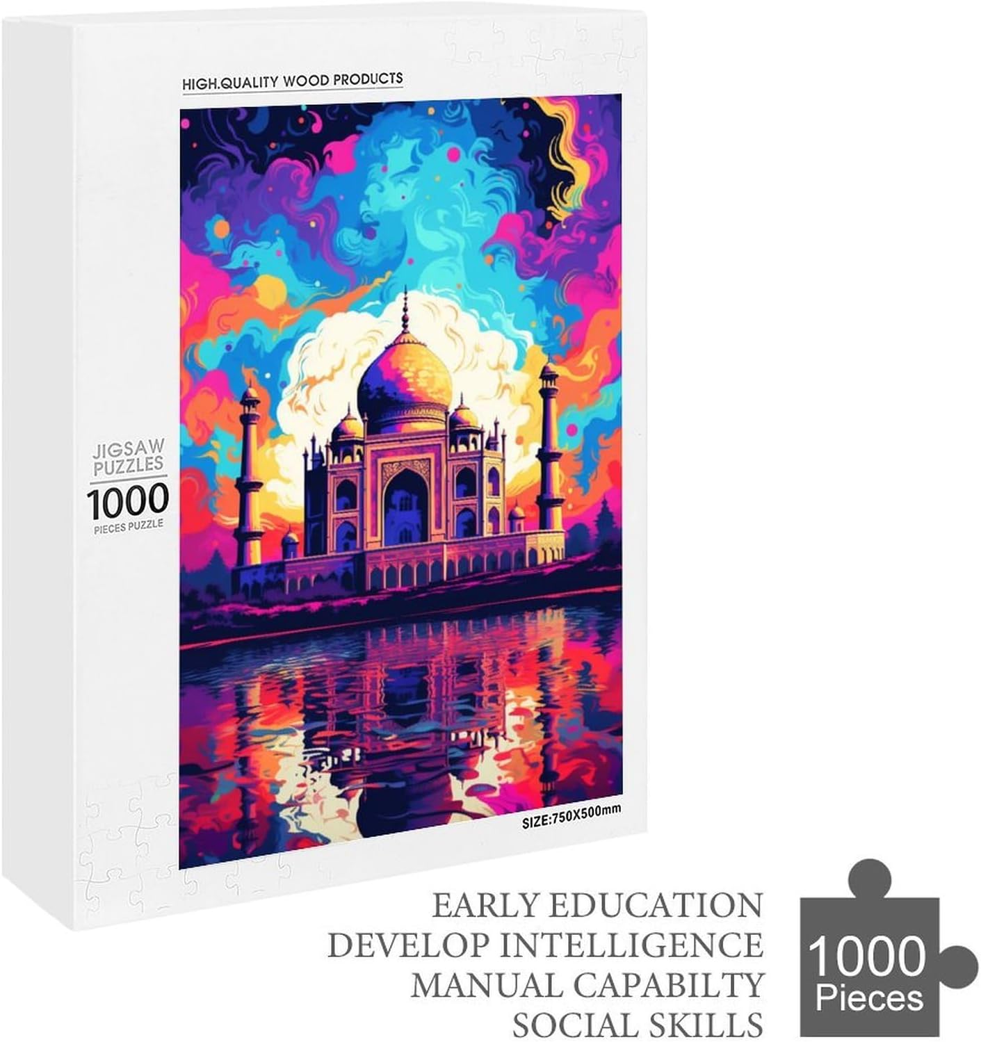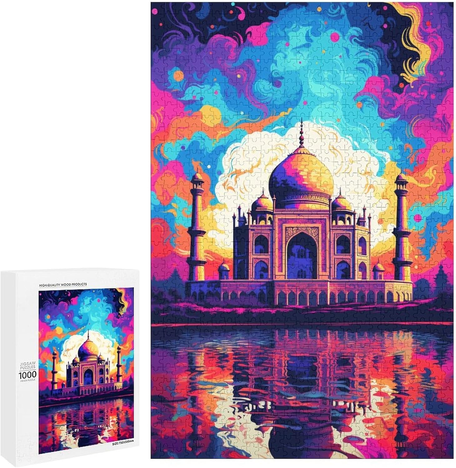 Puzzle da 1000 pezzi Il Taj Mahal è circondato da schizzi Molti puzzle colorati per adulti Gioco educativo in legno con puzzle da 1000 pezzi