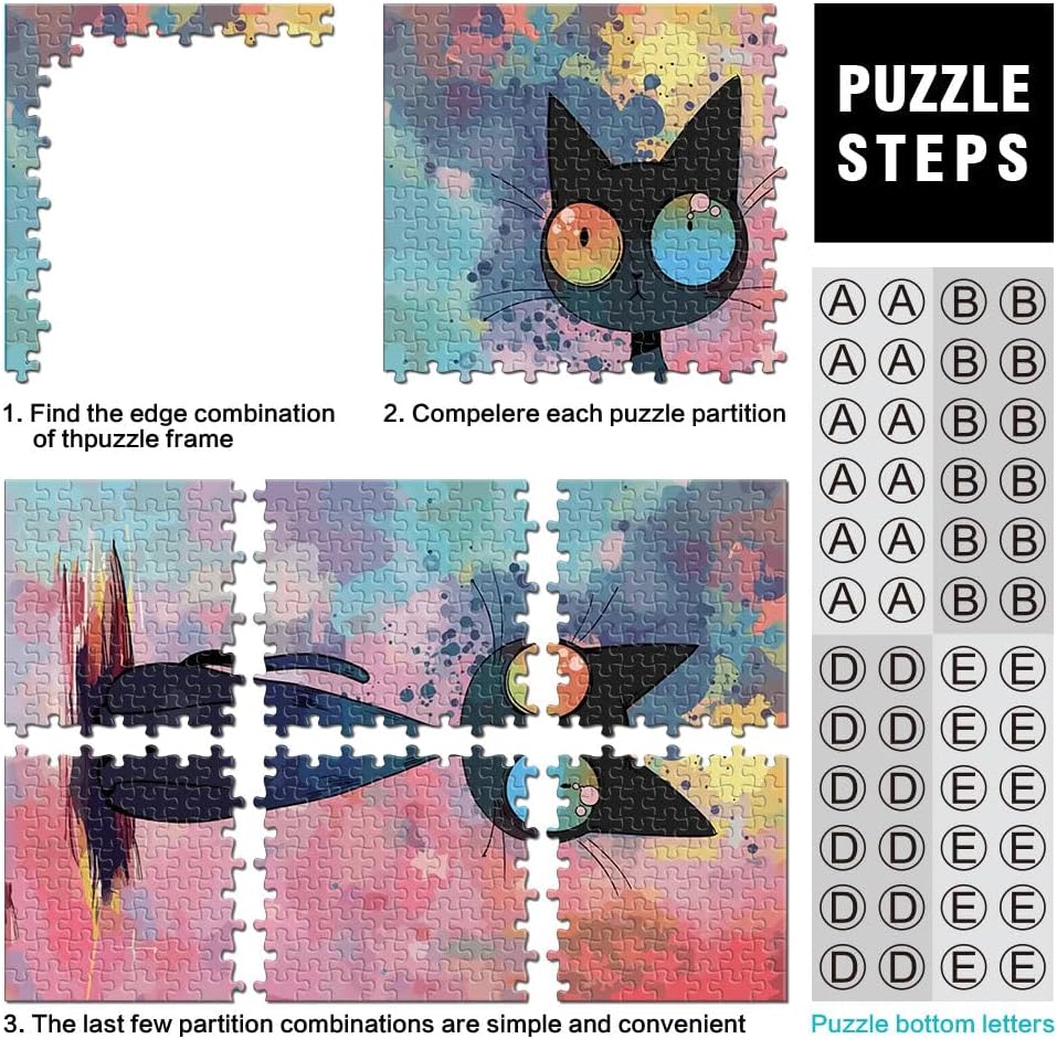 Puzzle da 1000 pezzi per adolescenti Gatto nero carino Il puzzle è confezionato in un sacchetto con coulisse e viene fornito con una bella scatola regalo e un poster regalo a grandezza naturale. Dimensioni finali 38x52cm 【Materiale di alta qualità】Realizzato in legno riciclabile di alta qualità, atossico, inodore e privo di polvere. La tecnologia di taglio di precisione garantisce che ogni pezzo del puzzle si adatti perfettamente, offrendoti la migliore esperienza. 【Design unico】: Utilizziamo una tecnologia di taglio di precisione per garantire che ogni pezzo del puzzle si adatti perfettamente senza polvere. Ogni pezzo del puzzle è stampato con inchiostro antiriflesso e atossico. La guida per le lettere sul retro del puzzle fornisce un ulteriore aiuto e rende il puzzle più facile da risolvere. 【Rilassamento e sollievo dallo stress】: I puzzle artistici sono un modo prezioso per godersi del tempo di qualità a casa. Assemblare un puzzle da 1000 pezzi può migliorare l'umore, potenziare le capacità cognitive e migliorare la memoria a breve termine. 【Supporto】 Se riscontri che al tuo puzzle manca un pezzo, non esitare a contattarci e lo sostituiremo con un puzzle con la stessa immagine senza domande o condizioni.