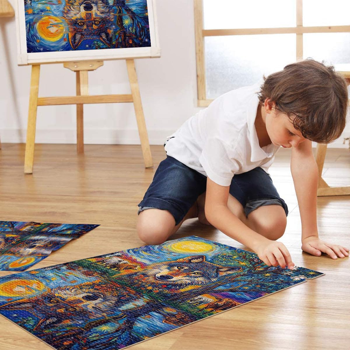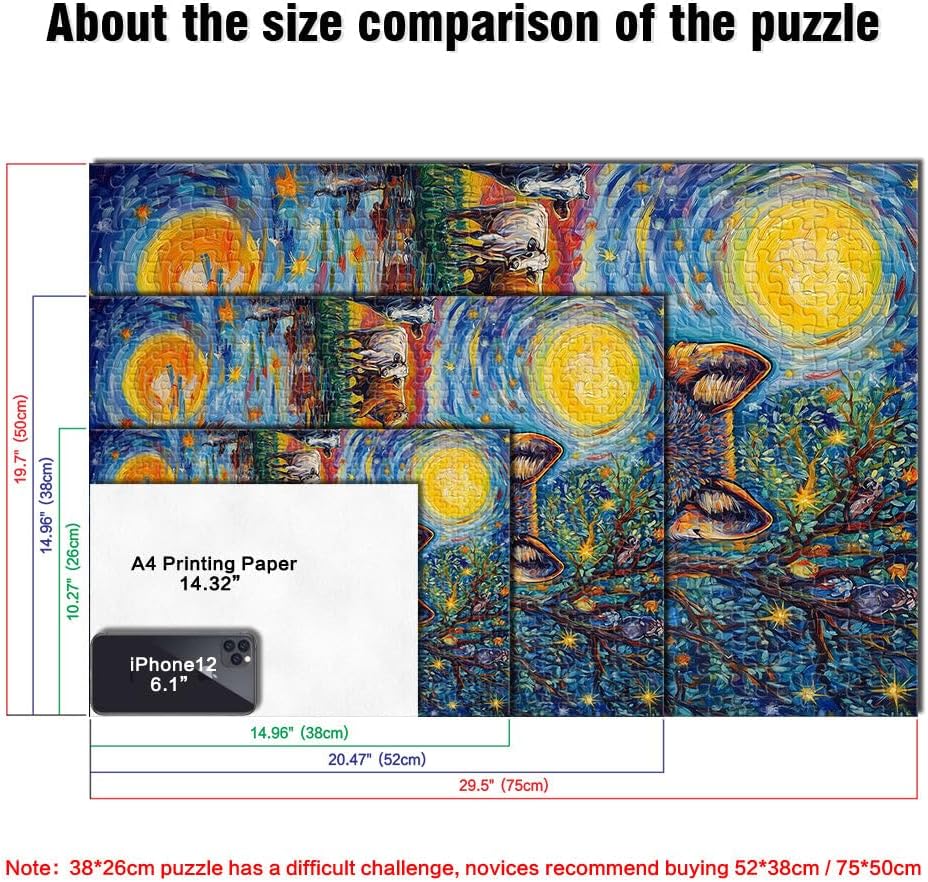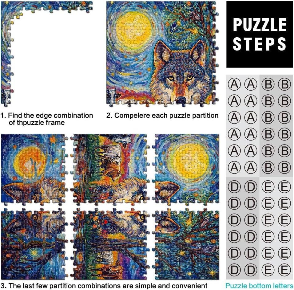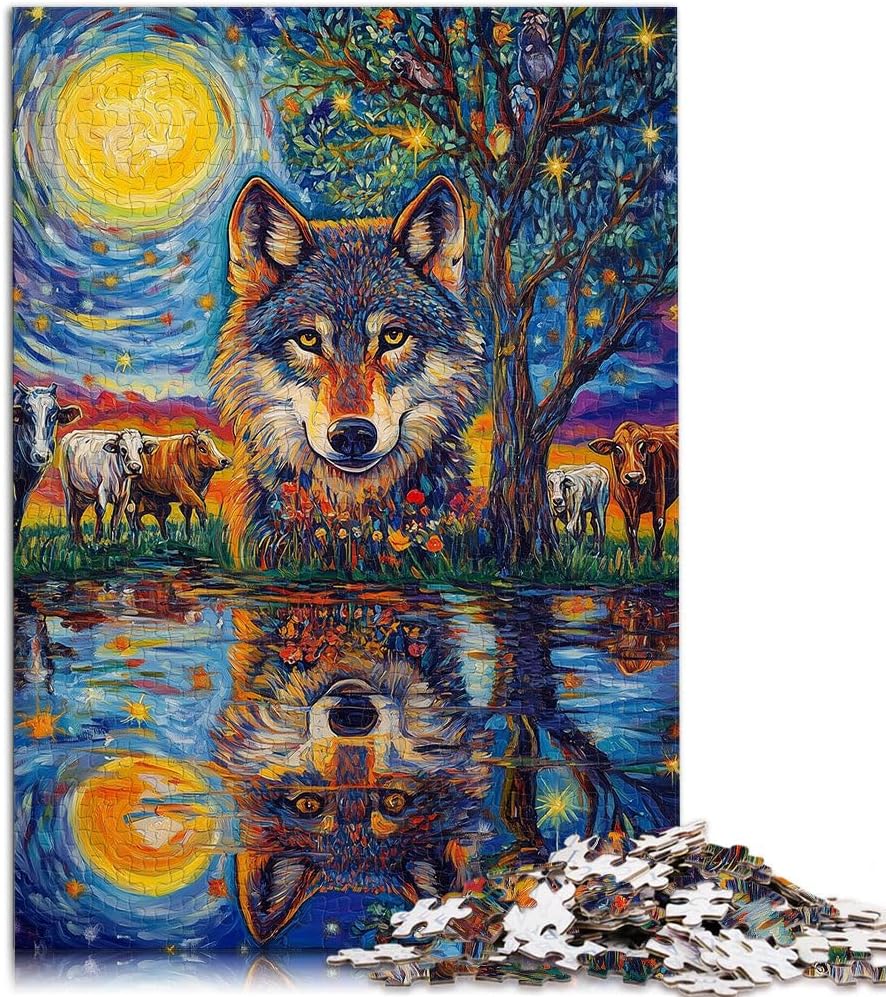 Puzzle da 1000 pezzi per adolescenti Lupo al chiaro di luna Fatto di legno per 14+ Per il divertimento in famiglia Regalo di compleanno, regali, arte murale misurare:50x75cm
