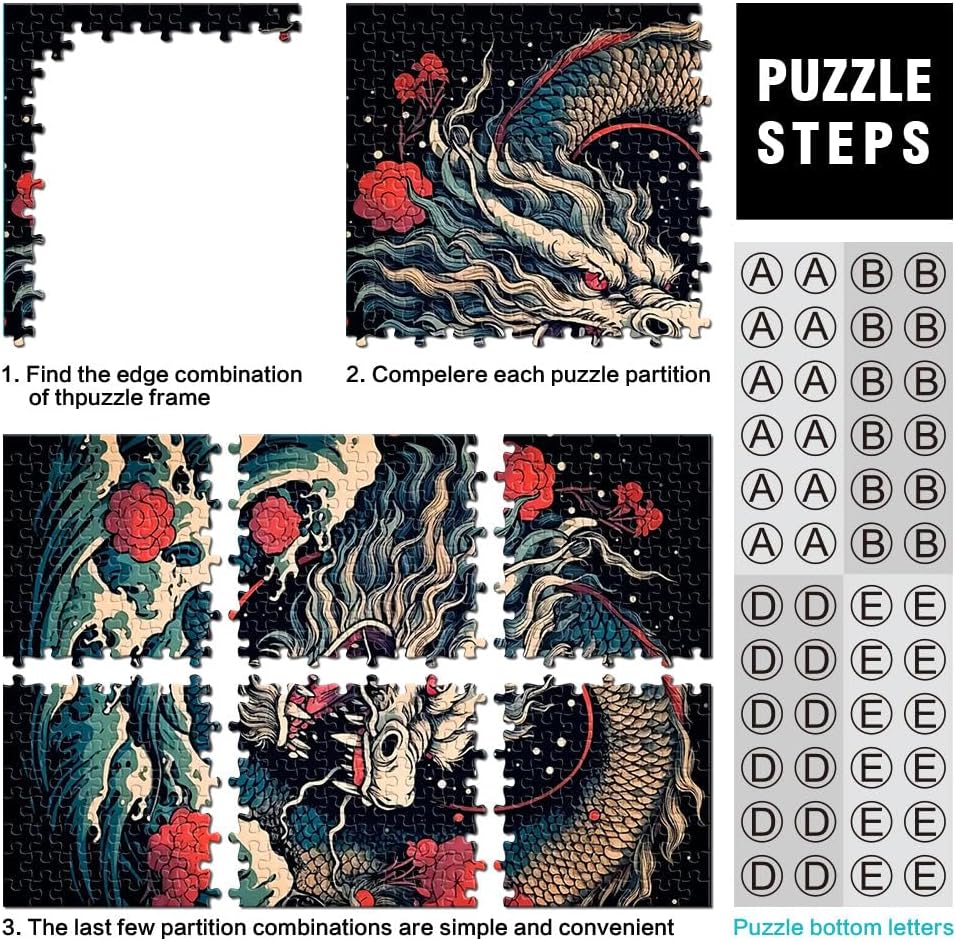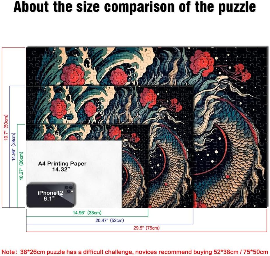 Puzzle da 1000 pezzi per adolescenti Onda del drago giapponese Il puzzle è confezionato in un sacchetto con coulisse e viene fornito con una bella scatola regalo e un poster regalo a grandezza naturale. Dimensioni finali 50x70cm 【Materiale di alta qualità】Realizzato in legno riciclabile di alta qualità, atossico, inodore e privo di polvere. La tecnologia di taglio di precisione garantisce che ogni pezzo del puzzle si adatti perfettamente, offrendoti la migliore esperienza. 【Design unico】: Utilizziamo una tecnologia di taglio di precisione per garantire che ogni pezzo del puzzle si adatti perfettamente senza polvere. Ogni pezzo del puzzle è stampato con inchiostro antiriflesso e atossico. La guida per le lettere sul retro del puzzle fornisce un ulteriore aiuto e rende il puzzle più facile da risolvere. 【Rilassamento e sollievo dallo stress】: I puzzle artistici sono un modo prezioso per godersi del tempo di qualità a casa. Assemblare un puzzle da 1000 pezzi può migliorare l'umore, potenziare le capacità cognitive e migliorare la memoria a breve termine. 【Supporto】 Se riscontri che al tuo puzzle manca un pezzo, non esitare a contattarci e lo sostituiremo con un puzzle con la stessa immagine senza domande o condizioni.
