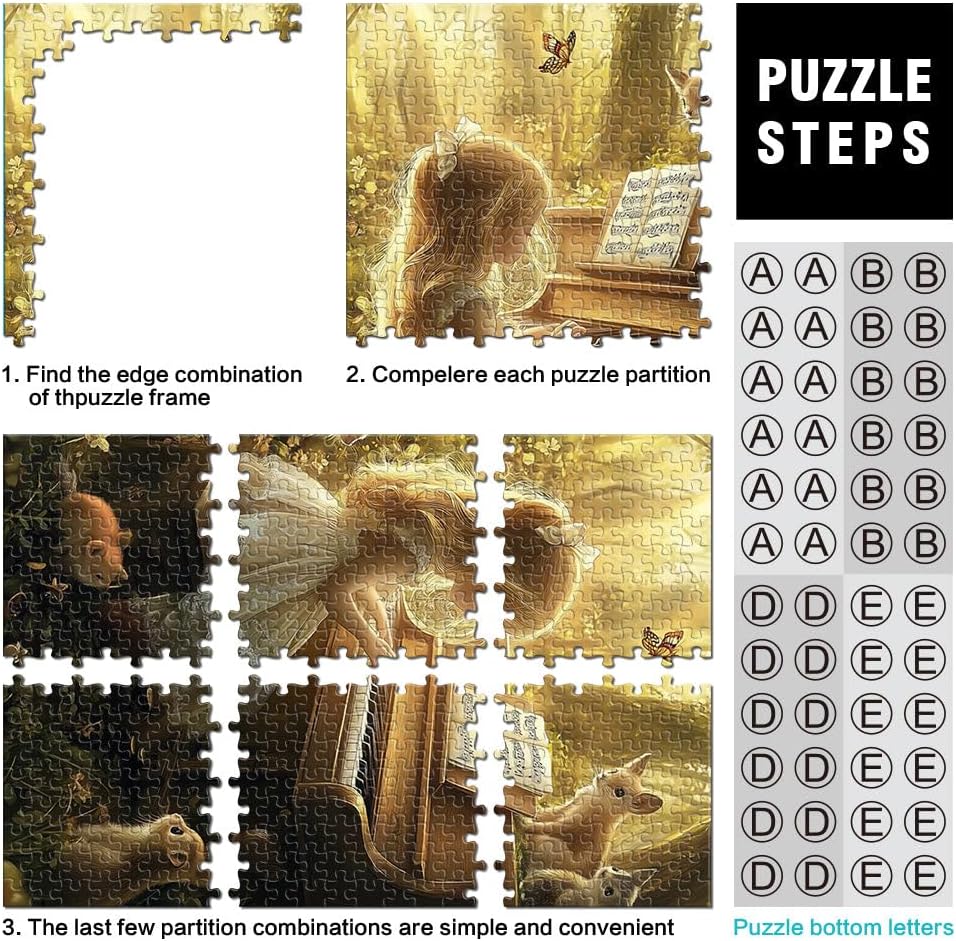 Puzzle da 1000 pezzi per adolescenti Ragazza che suona il pianoforte nella foresta Il puzzle è confezionato in un sacchetto con coulisse e viene fornito con una bella scatola regalo e un poster regalo a grandezza naturale. Dimensioni finali 38x26cm 【Alta qualità】: Questo puzzle da 1000 pezzi è realizzato in cartone riciclato di alta qualità. Il puzzle adotta una tecnologia avanzata di produzione di puzzle e la carta è più spessa, più resistente e non facile da deformare. 【Design unico】: Utilizziamo una tecnologia di taglio di precisione per garantire che ogni pezzo del puzzle si adatti perfettamente senza polvere. Ogni pezzo del puzzle è stampato con inchiostro antiriflesso e atossico. La guida per le lettere sul retro del puzzle fornisce un ulteriore aiuto e rende il puzzle più facile da risolvere. 【Rilassamento e sollievo dallo stress】: I puzzle artistici sono un modo prezioso per godersi del tempo di qualità a casa. Assemblare un puzzle da 1000 pezzi può migliorare l'umore, potenziare le capacità cognitive e migliorare la memoria a breve termine. 【Supporto】 Se riscontri che al tuo puzzle manca un pezzo, non esitare a contattarci e lo sostituiremo con un puzzle con la stessa immagine senza domande o condizioni.
