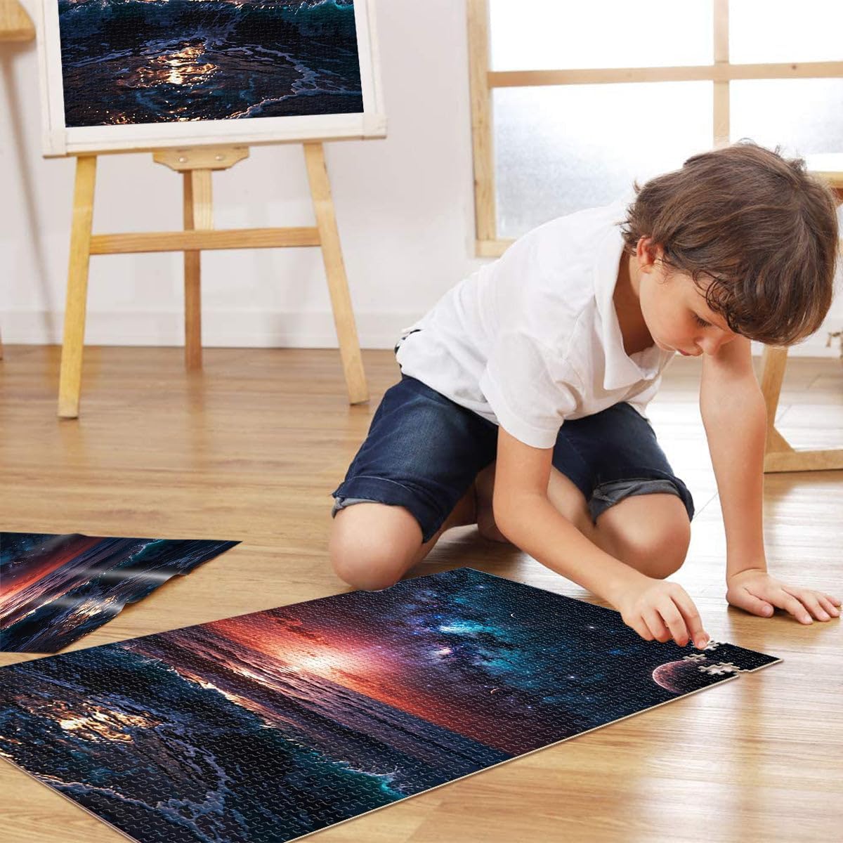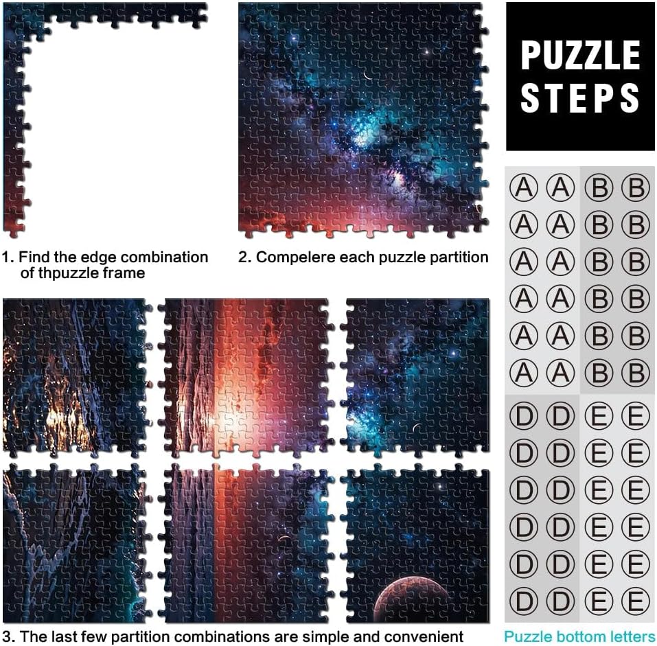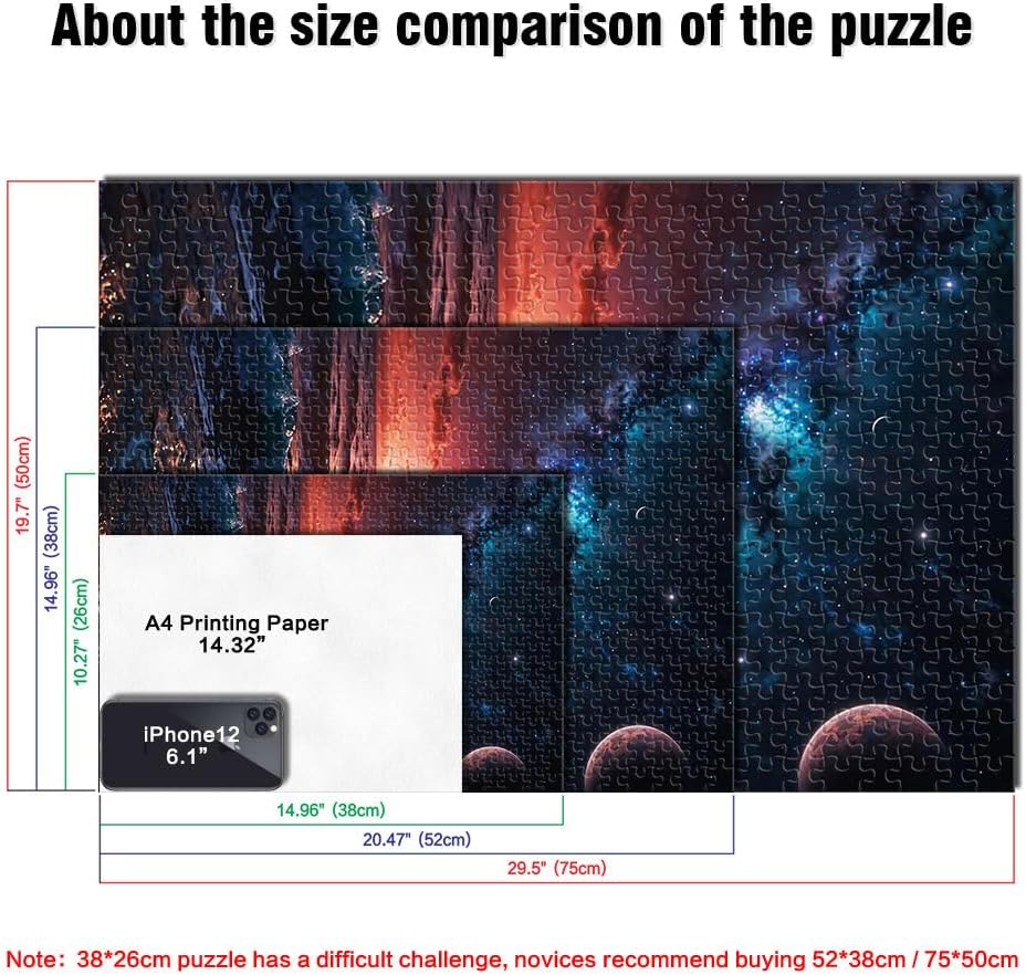 Puzzle da 1000 pezzi per adolescenti Sinfonia dell'oceano cosmico Il puzzle è confezionato in un sacchetto con coulisse e viene fornito con una bella scatola regalo e un poster regalo a grandezza naturale. Dimensioni finali 38x52cm 【Materiale di alta qualità】Realizzato in legno riciclabile di alta qualità, atossico, inodore e privo di polvere. La tecnologia di taglio di precisione garantisce che ogni pezzo del puzzle si adatti perfettamente, offrendoti la migliore esperienza. 【Design unico】: Utilizziamo una tecnologia di taglio di precisione per garantire che ogni pezzo del puzzle si adatti perfettamente senza polvere. Ogni pezzo del puzzle è stampato con inchiostro antiriflesso e atossico. La guida per le lettere sul retro del puzzle fornisce un ulteriore aiuto e rende il puzzle più facile da risolvere. 【Rilassamento e sollievo dallo stress】: I puzzle artistici sono un modo prezioso per godersi del tempo di qualità a casa. Assemblare un puzzle da 1000 pezzi può migliorare l'umore, potenziare le capacità cognitive e migliorare la memoria a breve termine. 【Supporto】 Se riscontri che al tuo puzzle manca un pezzo, non esitare a contattarci e lo sostituiremo con un puzzle con la stessa immagine senza domande o condizioni.