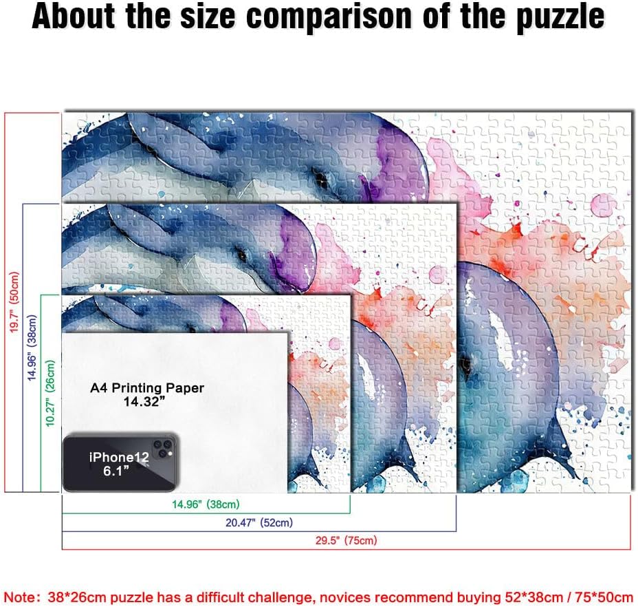 Puzzle da 1000 pezzi per adolescenti Storia d'amore di una coppia di delfini Il puzzle è confezionato in un sacchetto con coulisse e viene fornito con una bella scatola regalo e un poster regalo a grandezza naturale. Dimensioni finali 38x52cm 【Materiale di alta qualità】Realizzato in legno riciclabile di alta qualità, atossico, inodore e privo di polvere. La tecnologia di taglio di precisione garantisce che ogni pezzo del puzzle si adatti perfettamente, offrendoti la migliore esperienza. 【Design unico】: Utilizziamo una tecnologia di taglio di precisione per garantire che ogni pezzo del puzzle si adatti perfettamente senza polvere. Ogni pezzo del puzzle è stampato con inchiostro antiriflesso e atossico. La guida per le lettere sul retro del puzzle fornisce un ulteriore aiuto e rende il puzzle più facile da risolvere. 【Rilassamento e sollievo dallo stress】: I puzzle artistici sono un modo prezioso per godersi del tempo di qualità a casa. Assemblare un puzzle da 1000 pezzi può migliorare l'umore, potenziare le capacità cognitive e migliorare la memoria a breve termine. 【Supporto】 Se riscontri che al tuo puzzle manca un pezzo, non esitare a contattarci e lo sostituiremo con un puzzle con la stessa immagine senza domande o condizioni.