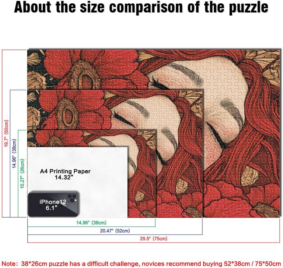 Puzzle da 1000 pezzi per adulti “Bellezza floreale rossa” Fatto di carta,per età 14+ Sfida di gioco giocattolo educativo regalo di compleanno。misurare:38x52cm/14.96x20.47pollice