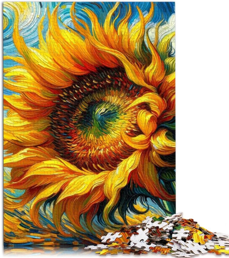 Puzzle da 1000 pezzi per adulti bellissimo girasole Fatto di legno da 14 anni in su Vacanze a casa: ammazzare il tempo Regali di giochi impegnativi misurare:50x75cm