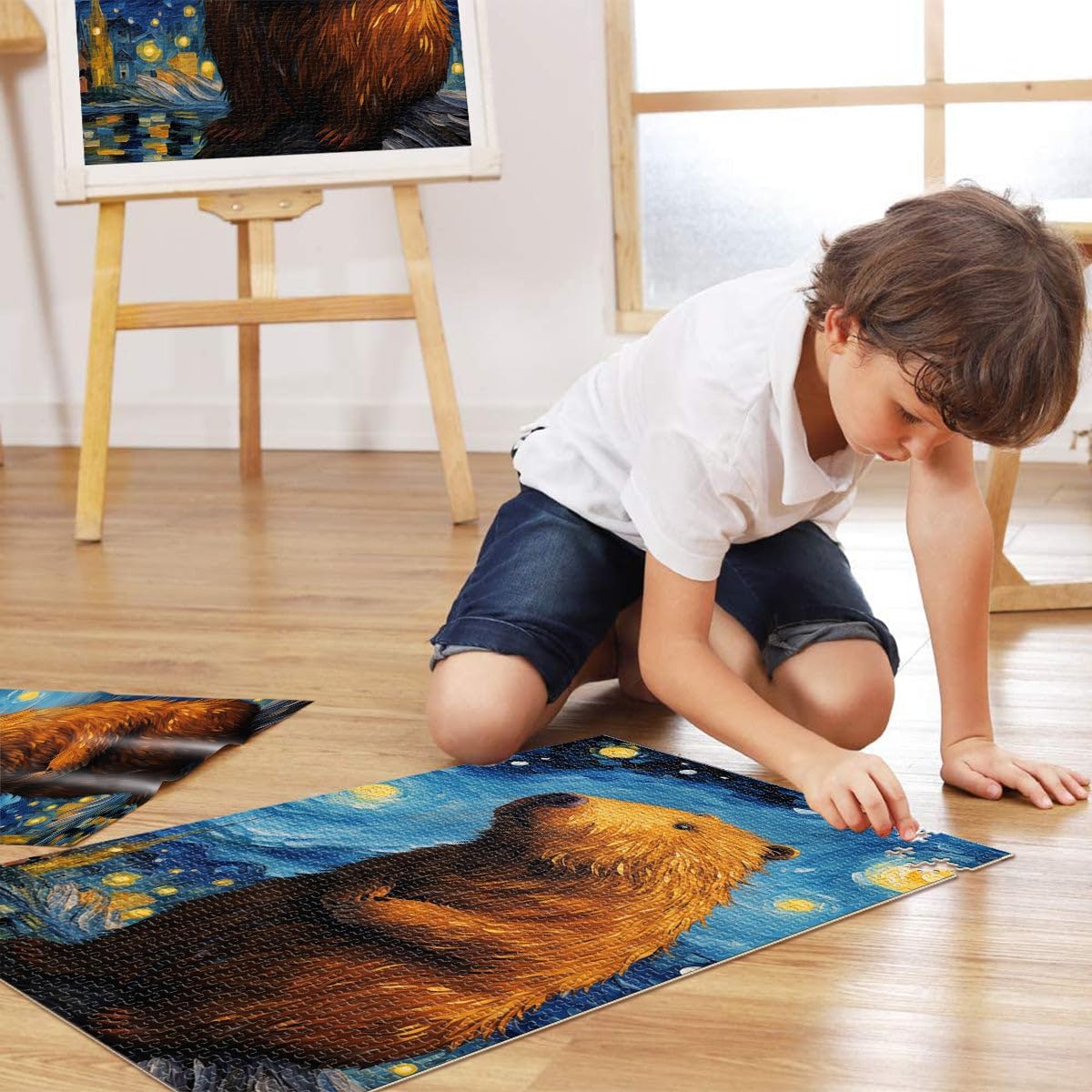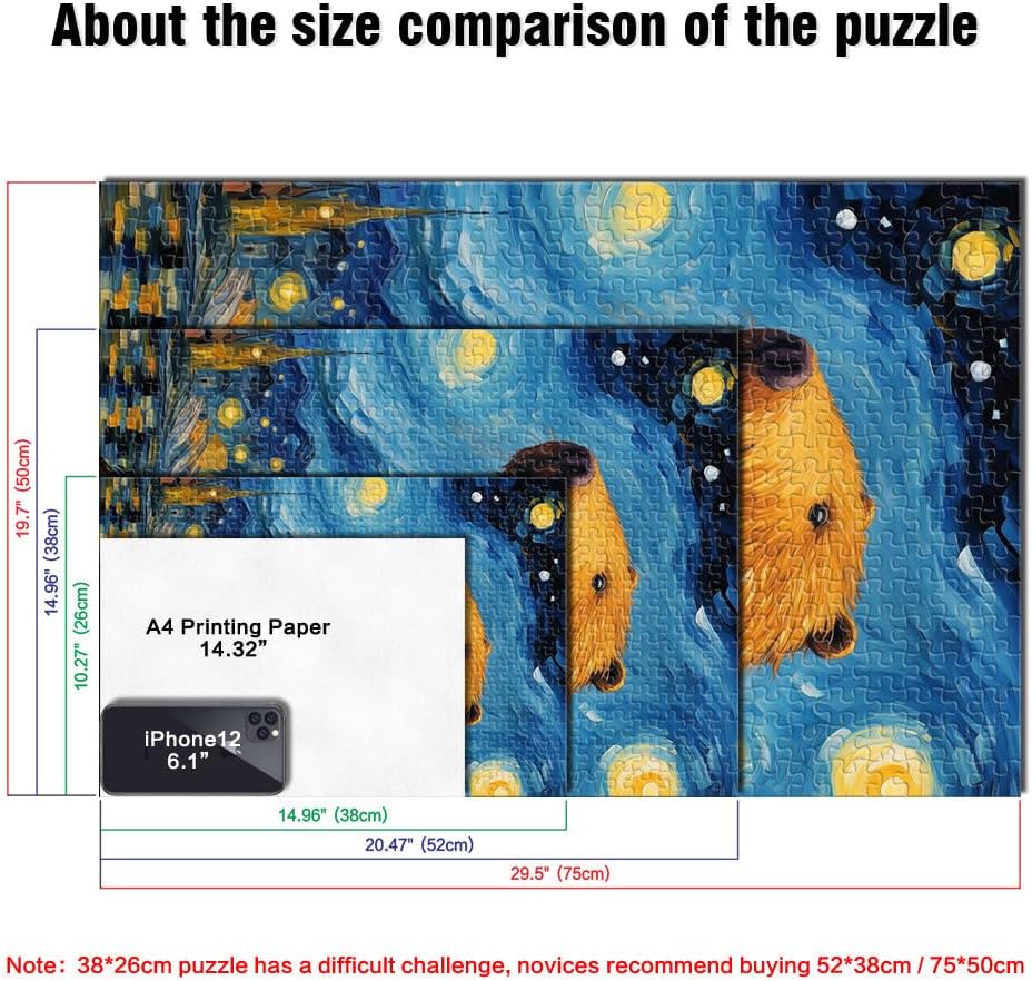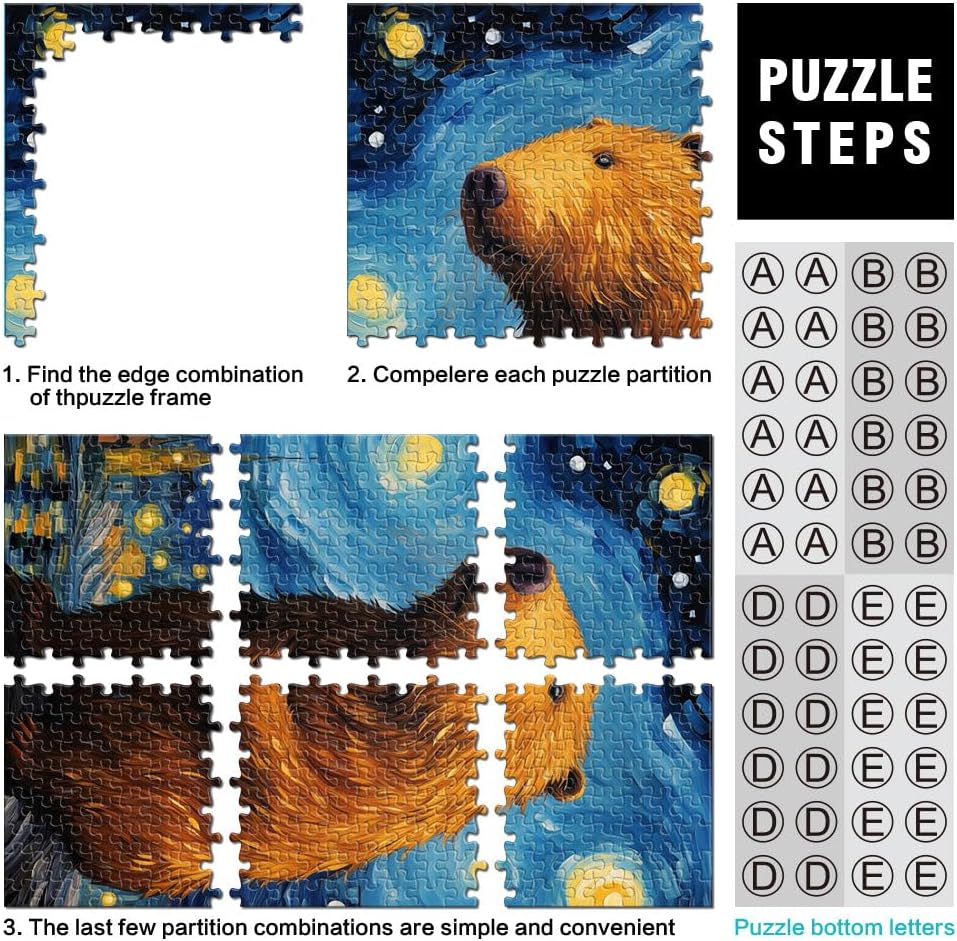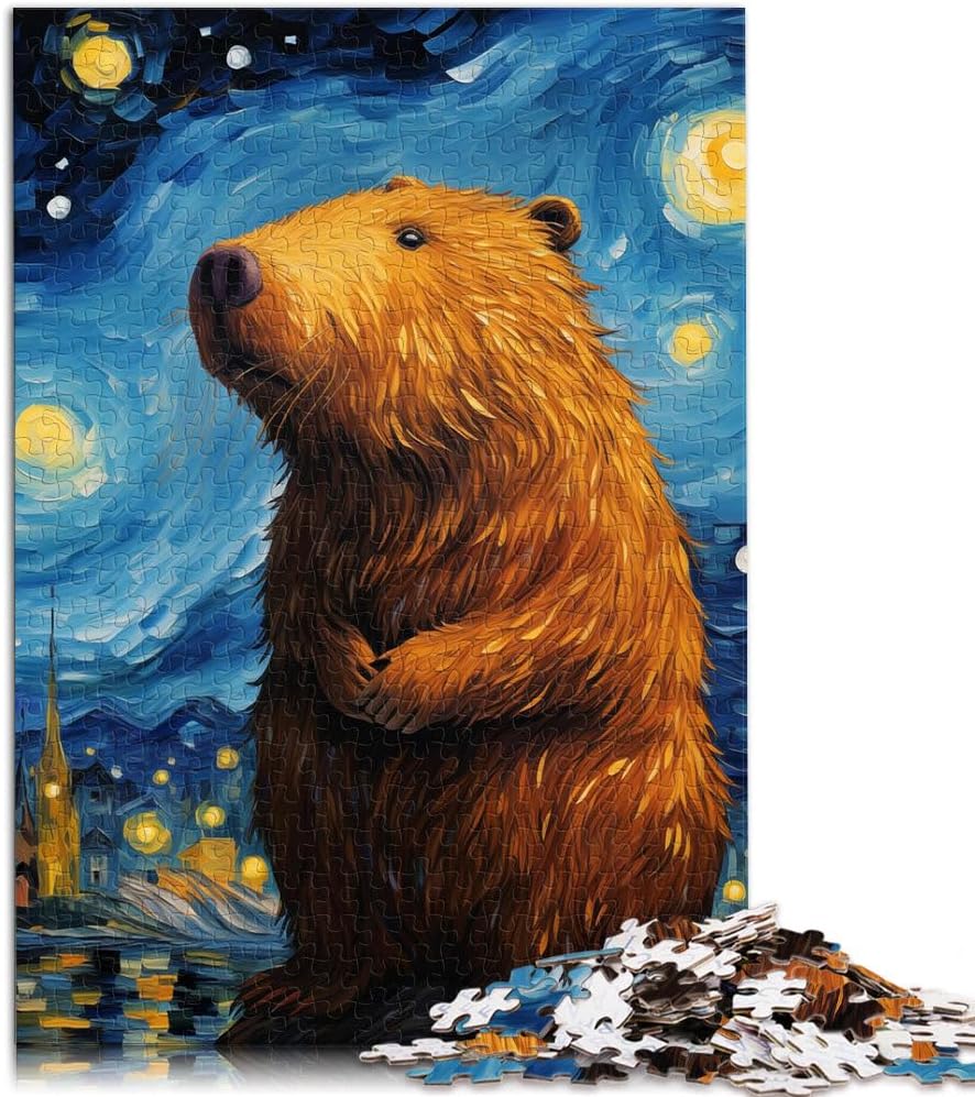 Puzzle da 1000 pezzi per adulti Capibara della notte stellata Fatto di legno per età 14+ Home Giochi Educativi Giocattoli Fai da Te Ottimi regali e giocattoli misurare:50x75cm