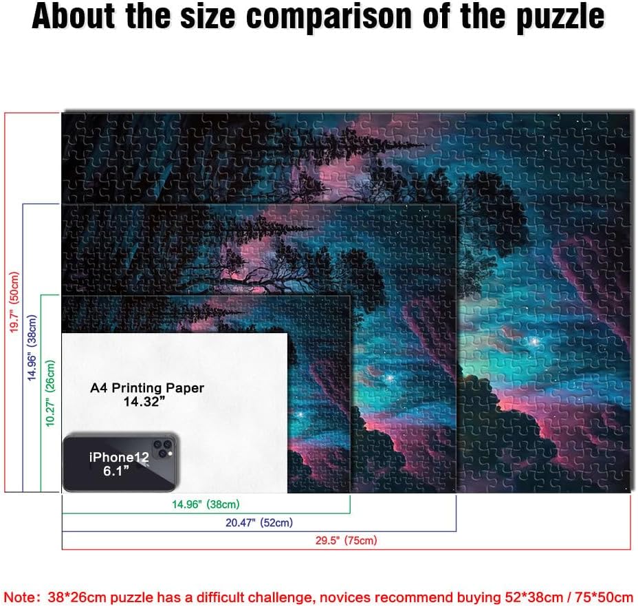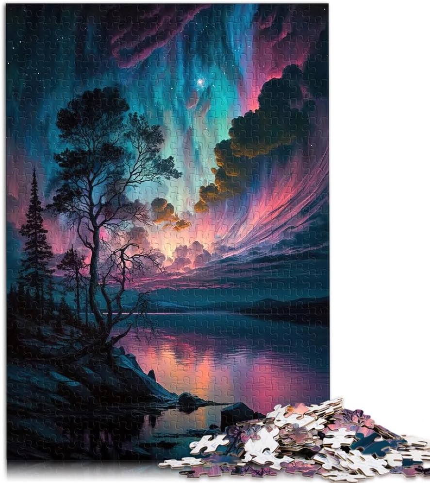 Puzzle da 1000 pezzi per adulti Cielo blu viola sopra il lago Fatto di legno da 14 anni in su Giocare con i giocattoli perché è ideale come regalo per tutta la famiglia misurare:50x75cm