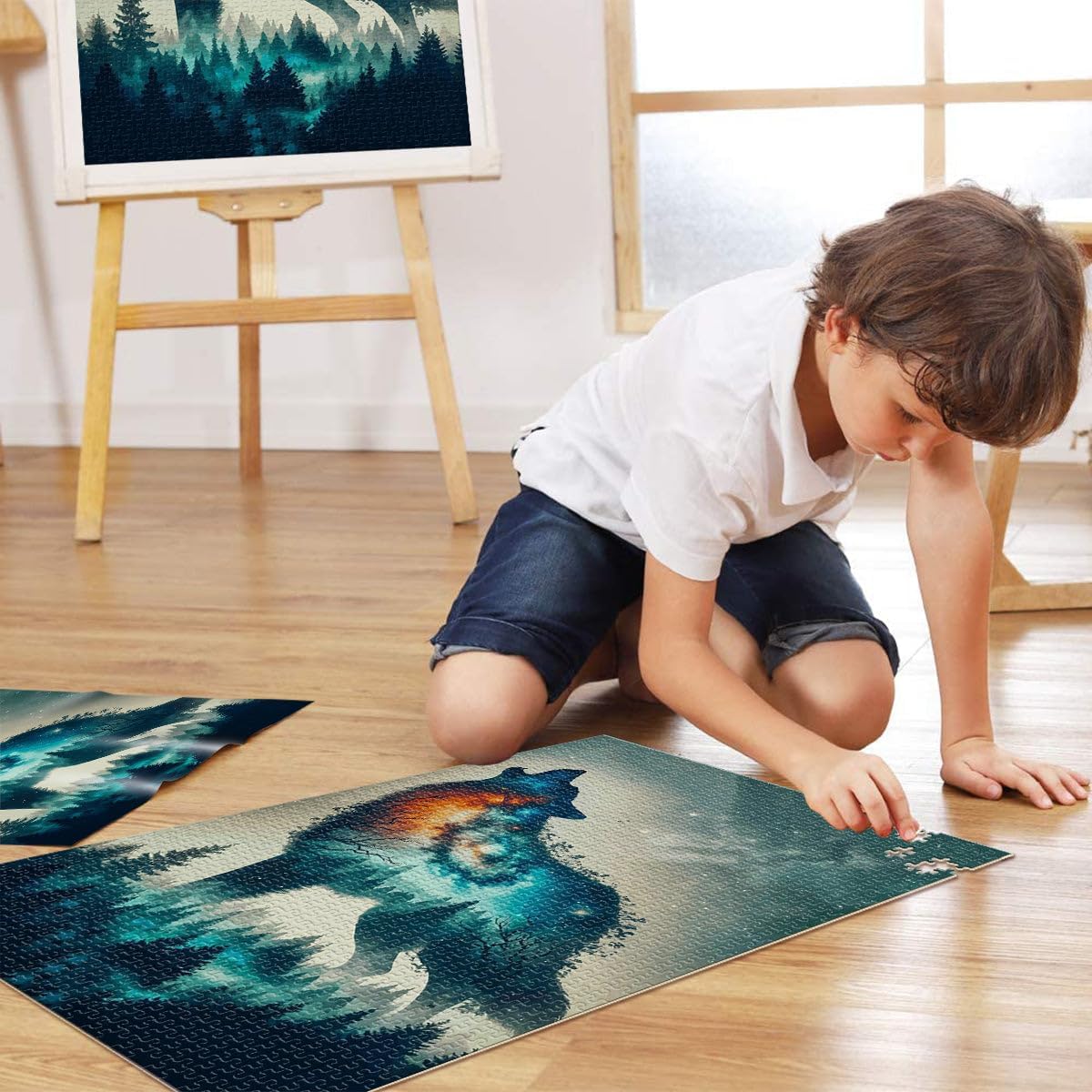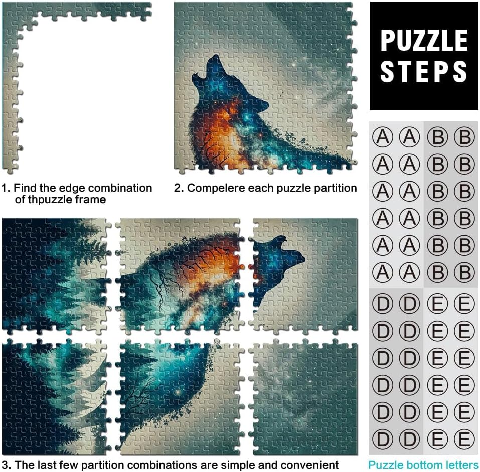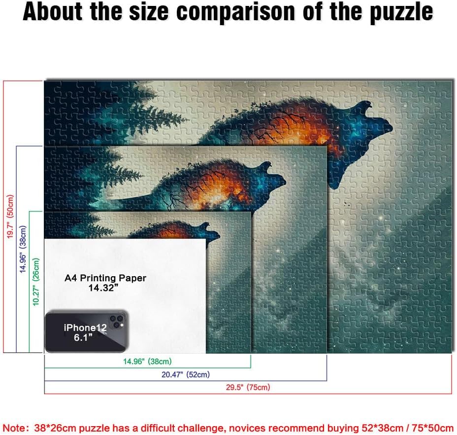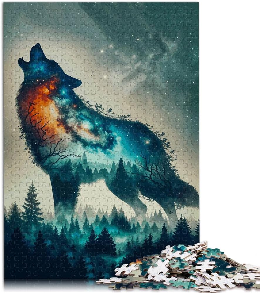 Puzzle da 1000 pezzi per adulti doppia esposizione del lupo Fatto di legno per età 14+ Giocattolo sfida Decorazioni e regali unici per la casa misurare:50x75cm