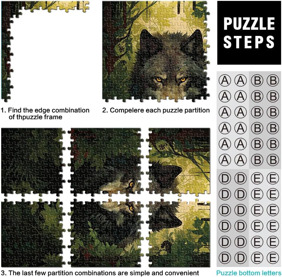 Puzzle da 1000 pezzi per adulti e adolescenti Arte del lupo Fatto di legno Adatto a partire dai 14 anni Gioco pratico regali per amici e familiari misurare:50x75cm
