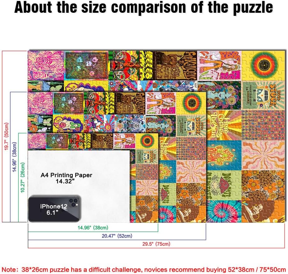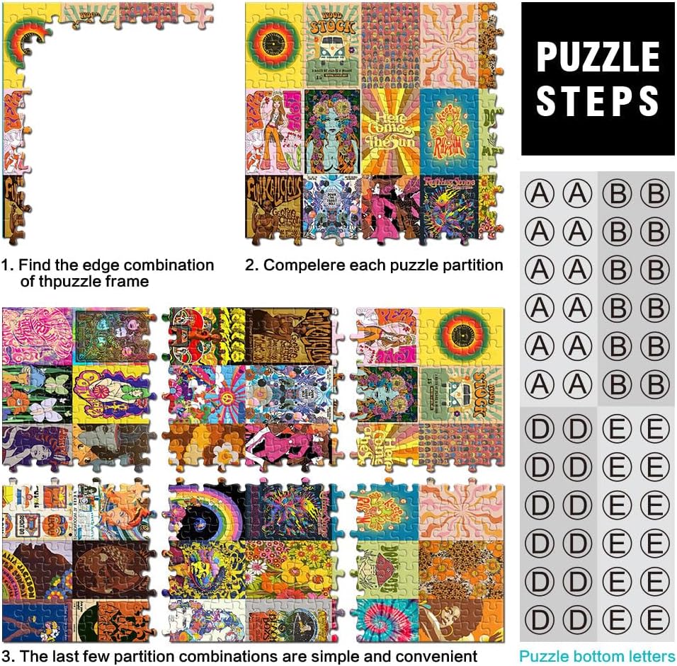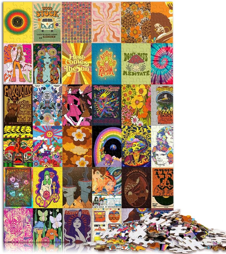Puzzle da 1000 pezzi per adulti e adolescenti arte patchwork hippie Fatto di legno Adatto a partire dai 14 anni Analisi e logica Regali di compleanno misurare:50x75cm