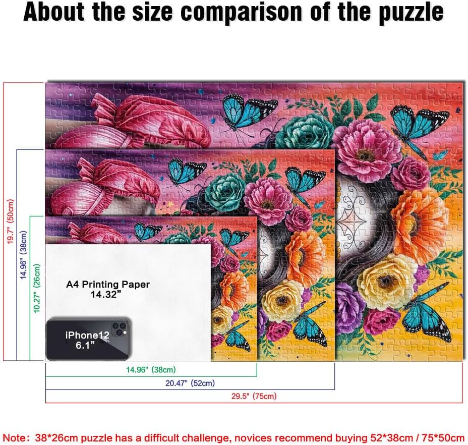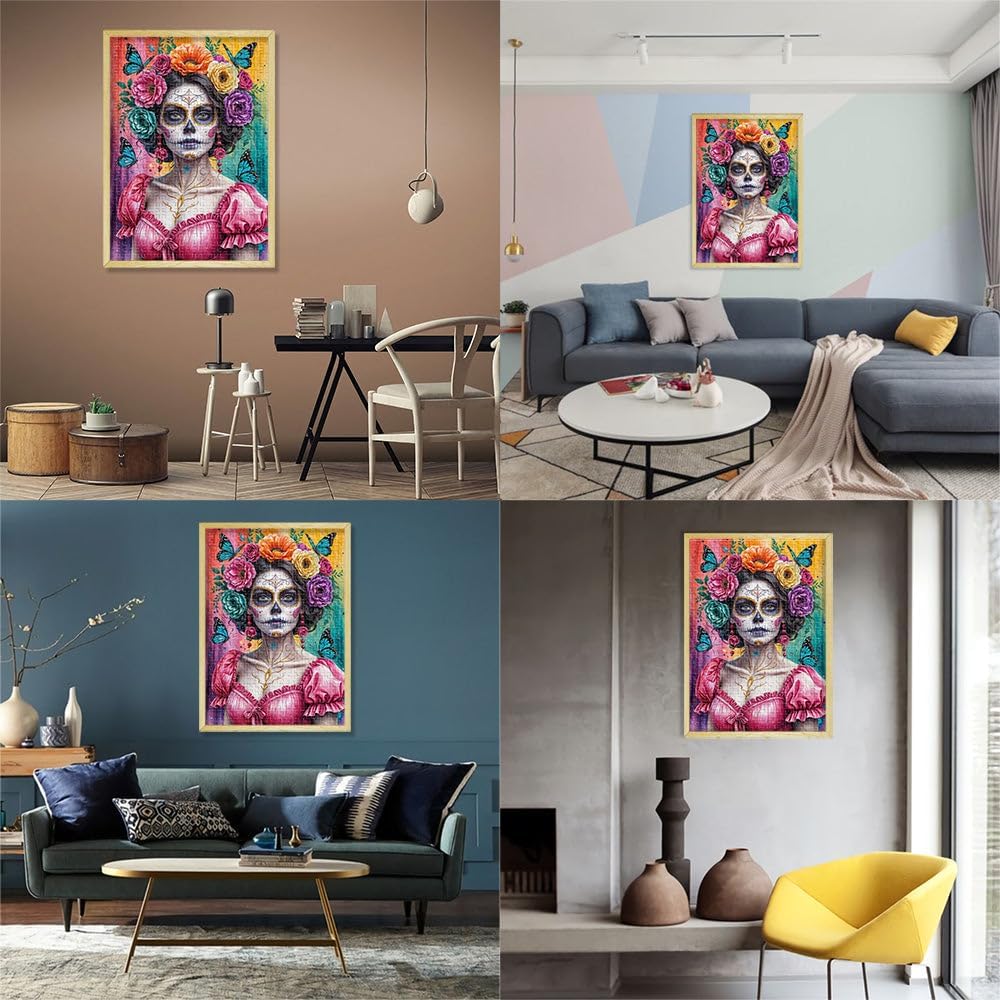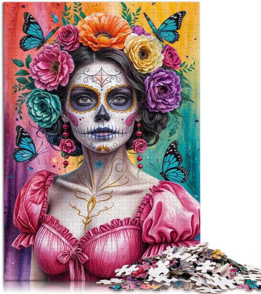 Puzzle da 1000 pezzi per adulti e adolescenti Donna teschio di zucchero con fiori Adatto a partire dai 14 anni Antistress Vacanza a casa Uccidere il tempo Regalo divertente per la famiglia