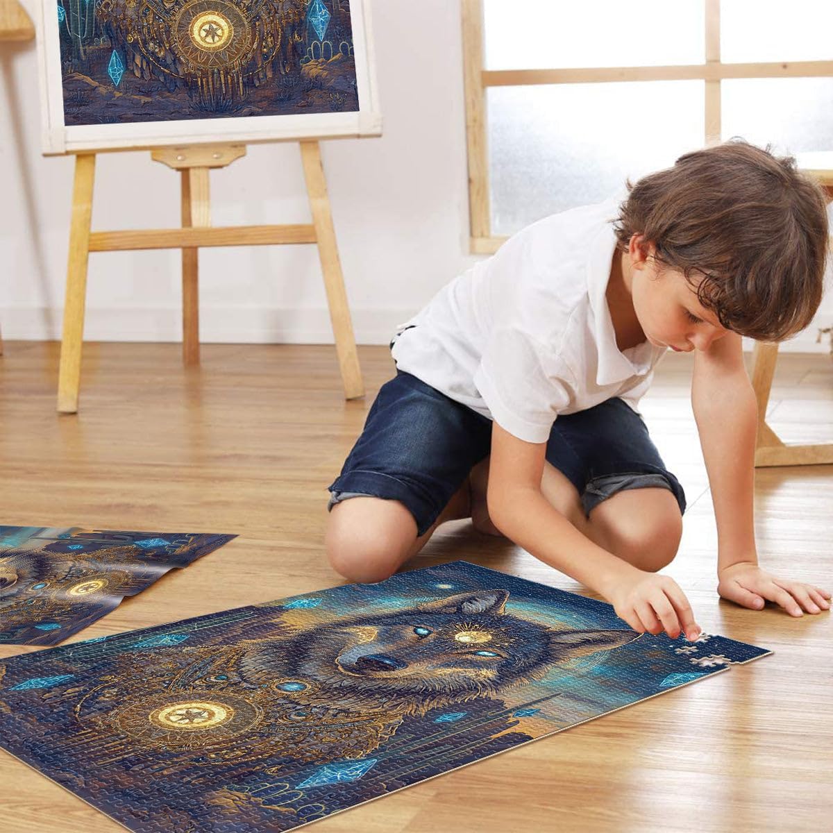 Puzzle da 1000 pezzi per adulti e adolescenti Fantasia del lupo Fatto di legno Adatto a partire dai 14 anni Giocattolo educativo per l'apprendimento regali per amici e familiari misurare:50x75cm