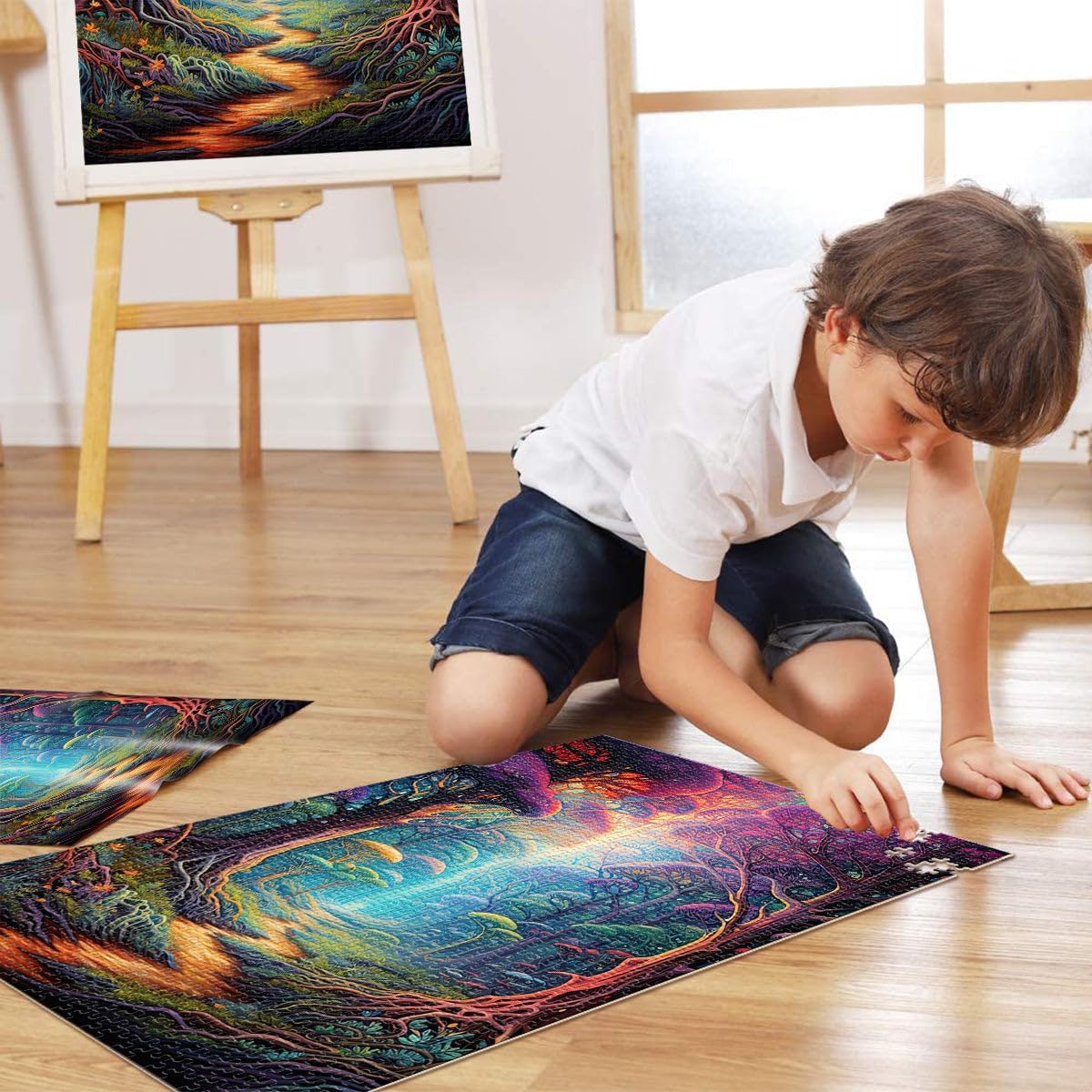 Puzzle da 1000 pezzi per adulti e adolescenti Foresta psichedelica Fatto di legno per età 14+ Giocattolo educativo di decompressione intellettuale Regali di compleanno misurare:50x75cm