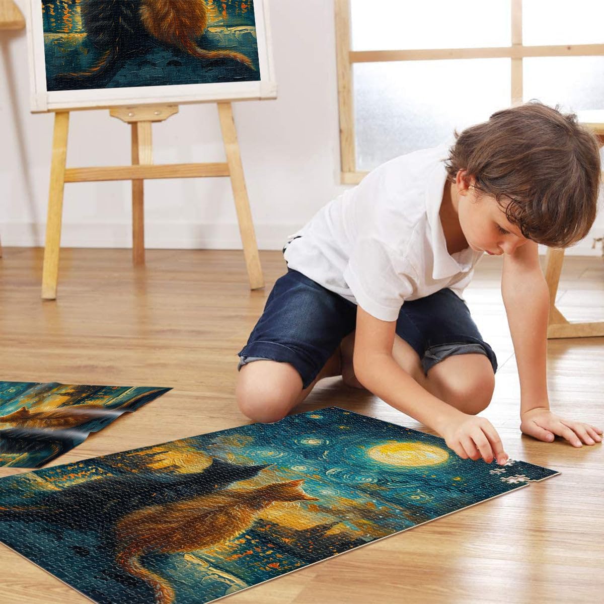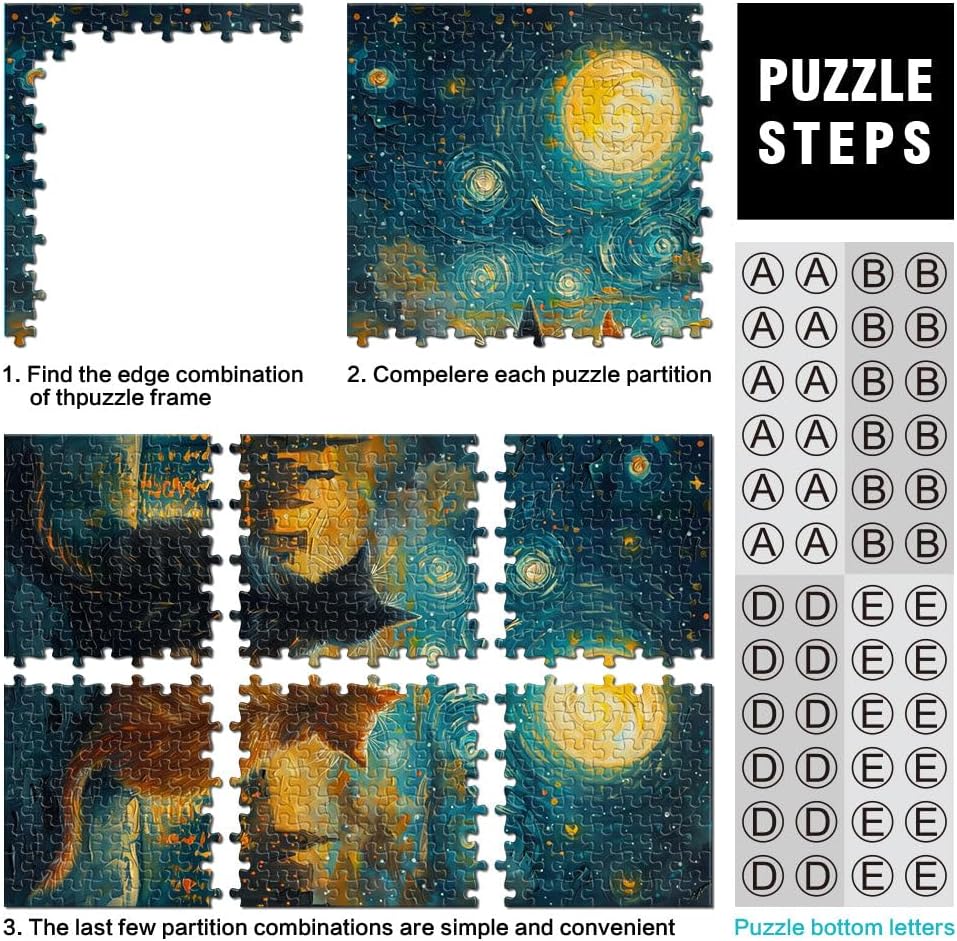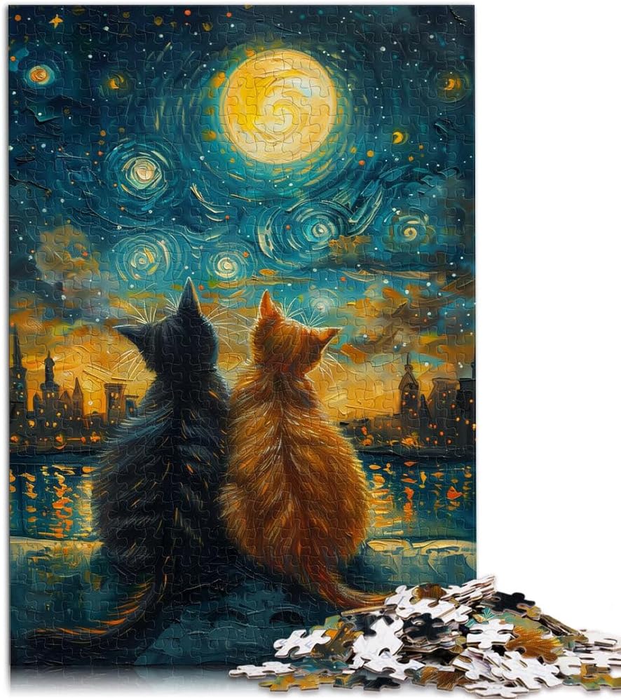 Puzzle da 1000 pezzi per adulti e adolescenti Gatti innamorati nella notte stellata Fatto di legno Adatto a partire dai 14 anni Antistress Sfida difficile Regalo per i compleanni misurare:50x75cm