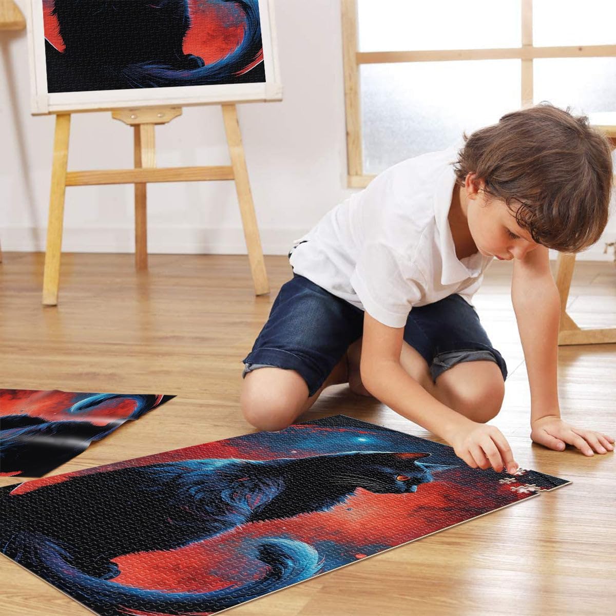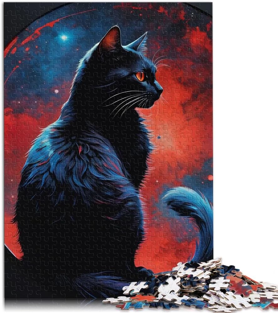 Puzzle da 1000 pezzi per adulti e adolescenti gatto nero Fatto di legno Adatto a partire dai 14 anni Giocattolo educativo di decompressione intellettuale Regali di compleanno misurare:50x75cm