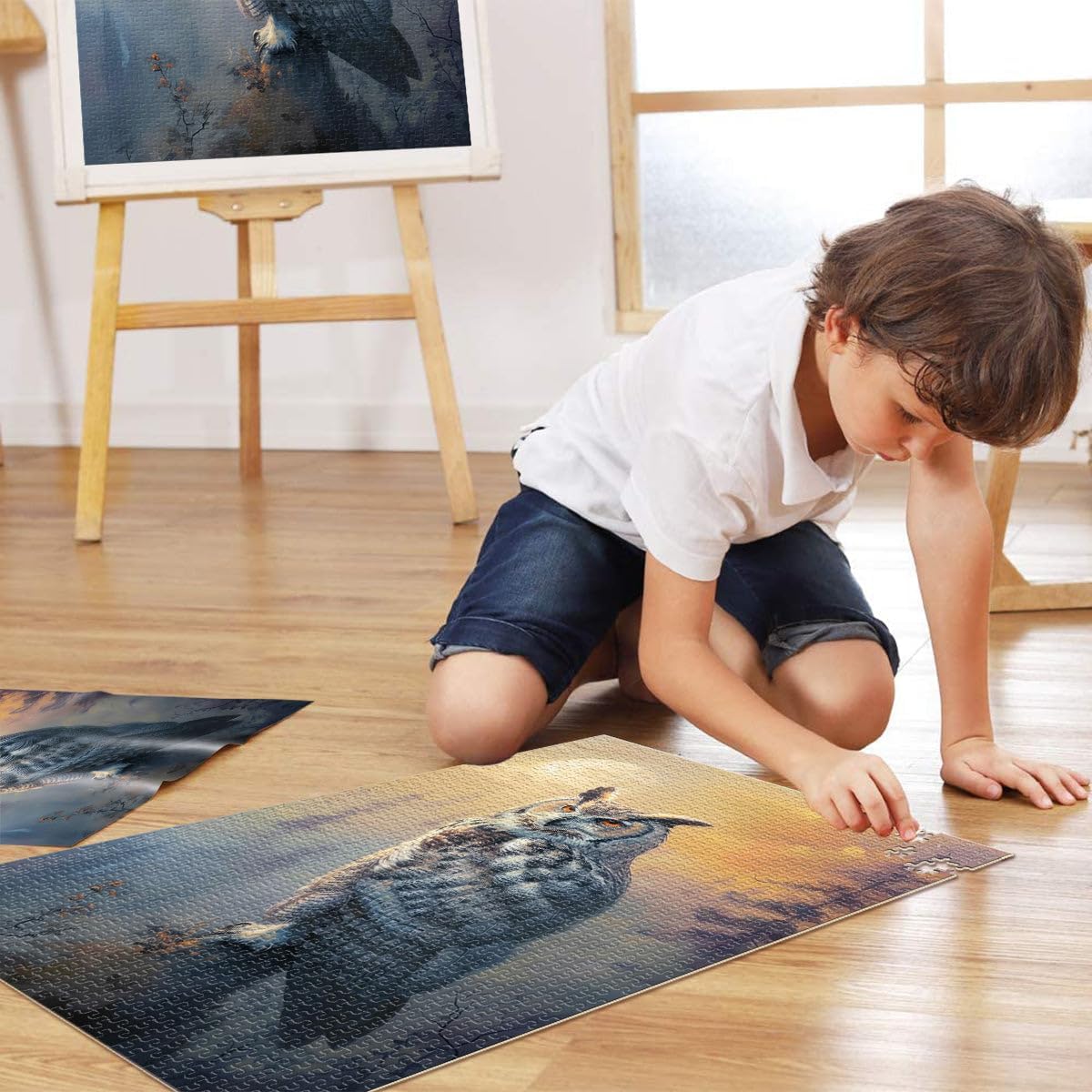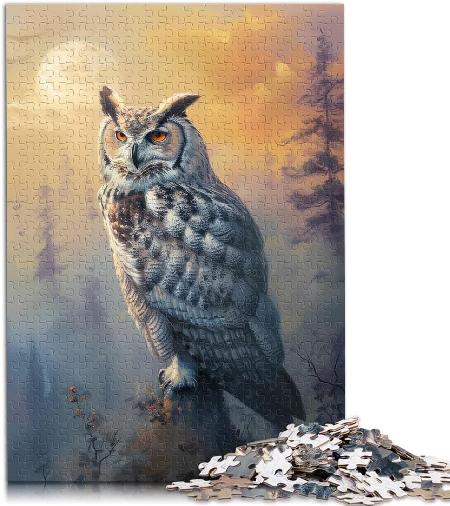 Puzzle da 1000 pezzi per adulti e adolescenti Gufo dell'alba nebbiosa Fatto di legno Adatto a partire dai 14 anni Puzzle per Gioco educativo per compleanno e Natale misurare:50x75cm