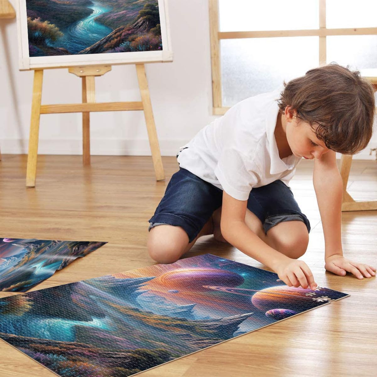 Puzzle da 1000 pezzi per adulti e adolescenti Paesaggio spaziale Fatto di legno Adatto a persone dai 14 anni in su Giochi educativi Regali di Babbo Natale segreto misurare:50x75cm