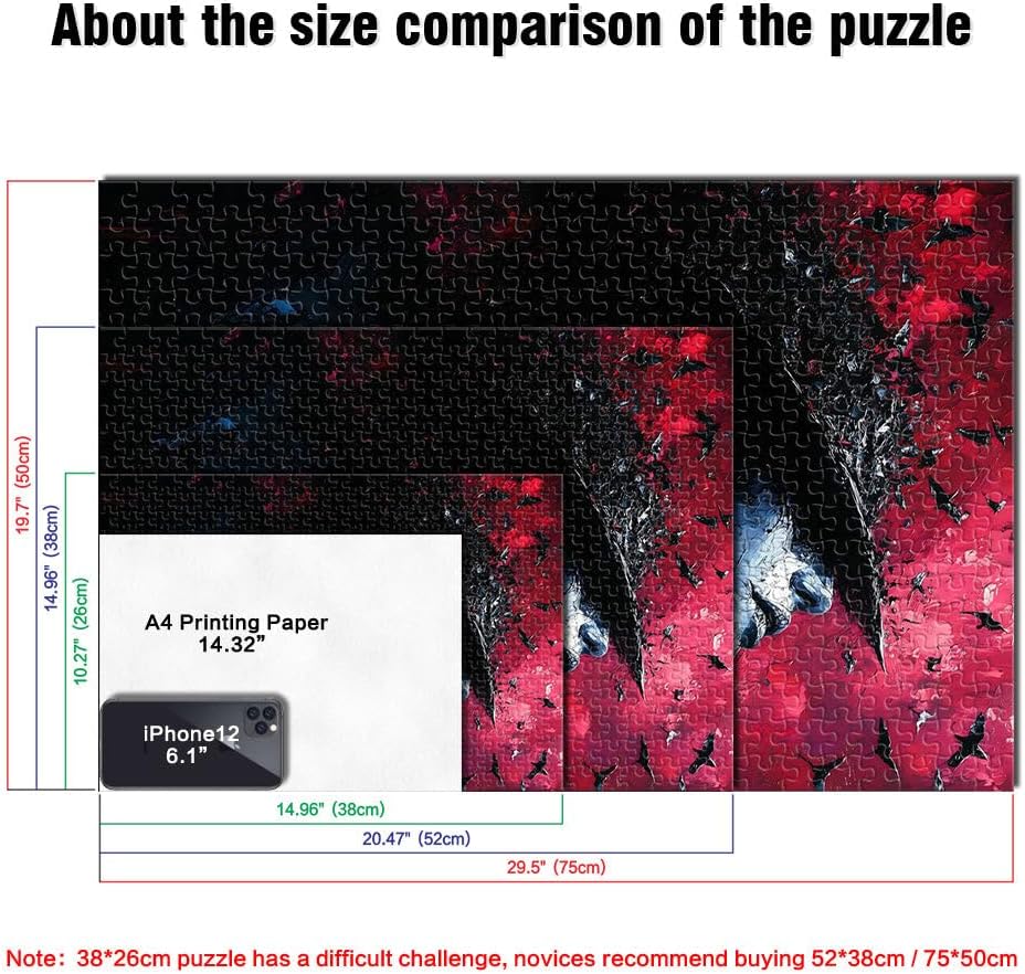 Puzzle da 1000 pezzi per adulti e adolescenti Pipistrello vampiro umano Fatto di legno Adatto a persone dai 14 anni in su Giocattolo sfida Decorazioni e regali unici per la casa misurare:50x75cm