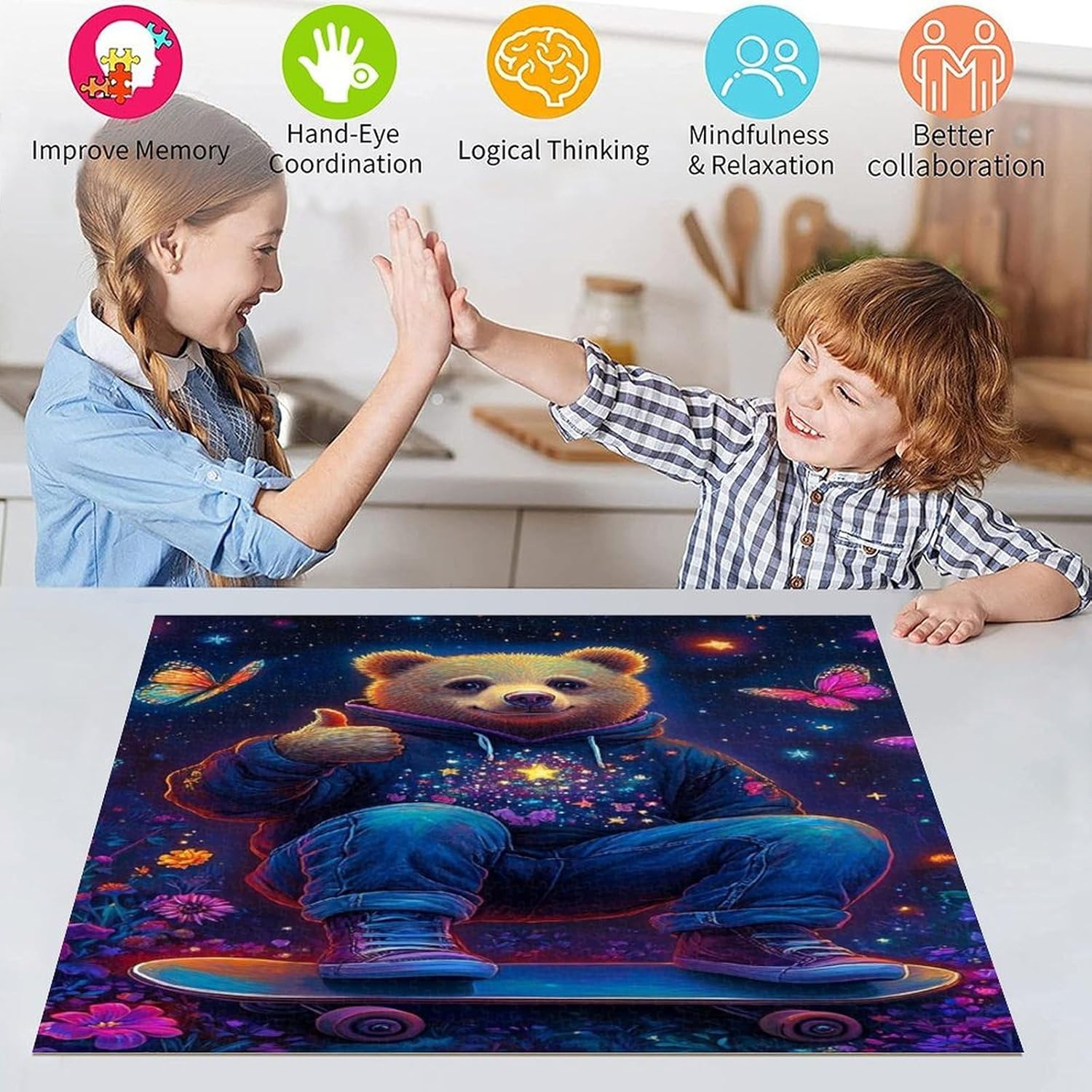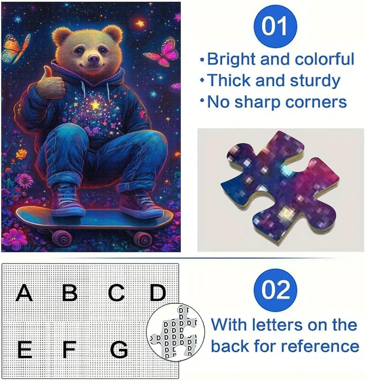 Dimensioni e confezione del puzzle: Ogni set di puzzle da 1000 pezzi per adulti viene fornito in una scatola pulita e antipolvere, insieme a un poster di riferimento a grandezza naturale (26x38cm, 50x75cm), rendendo il montaggio più facile e divertente. Il puzzle finito può anche essere incorniciato come una splendida decorazione da parete! Segni delle lettere sui puzzle: Il retro dei puzzle per adulti è suddiviso in diverse aree. Questo rende il puzzle da 1000 pezzi più semplice. Naturalmente, è possibile ignorarle per un livello di difficoltà più elevato. Di buona fattura: I puzzle colorati e difficili sono realizzati con materiali di alta qualità, robusti, spessi e non facili da piegare, e tagliati con precisione per una perfetta aderenza. I puzzle per adulti presentano un'alta risoluzione, una finitura opaca e bordi lisci. Per tutti gli amanti dei puzzle: Adatto sia ai principianti che ai giocatori di livello intermedio e avanzato in cerca di una sfida appagante. I puzzle possono aiutarti a ridurre lo stress, a concentrare l'attenzione, a promuovere la creatività, a esercitare la capacità di pensiero e a migliorare le capacità logiche. Garanzia di soddisfazione al 100%: adorerai i puzzle da 1000 pezzi, eleganti e alla moda, dal design accattivante. Se hai domande sui puzzle o hai ricevuto un pezzo mancante, puoi contattarci in qualsiasi momento, ti offriremo un servizio eccellente.