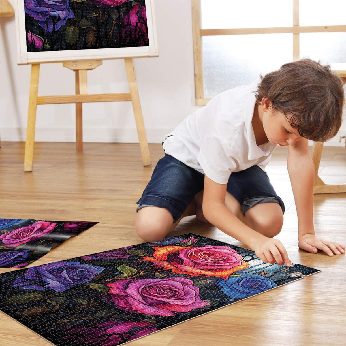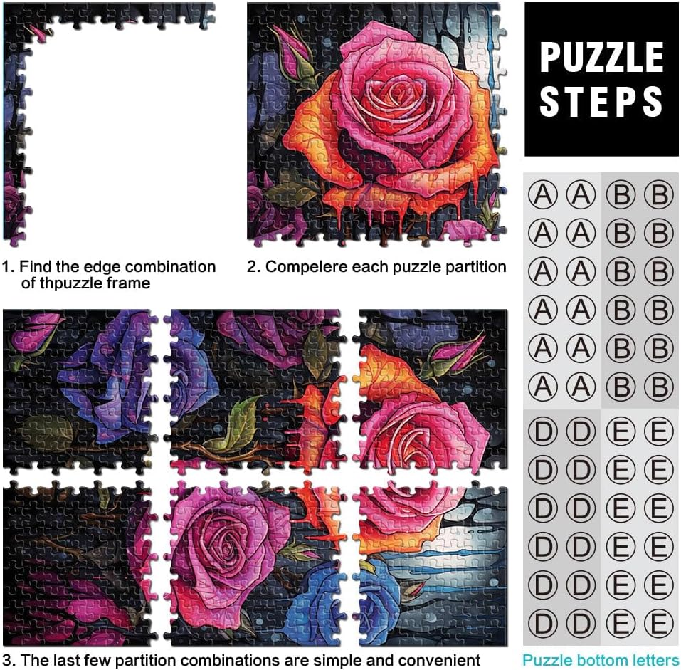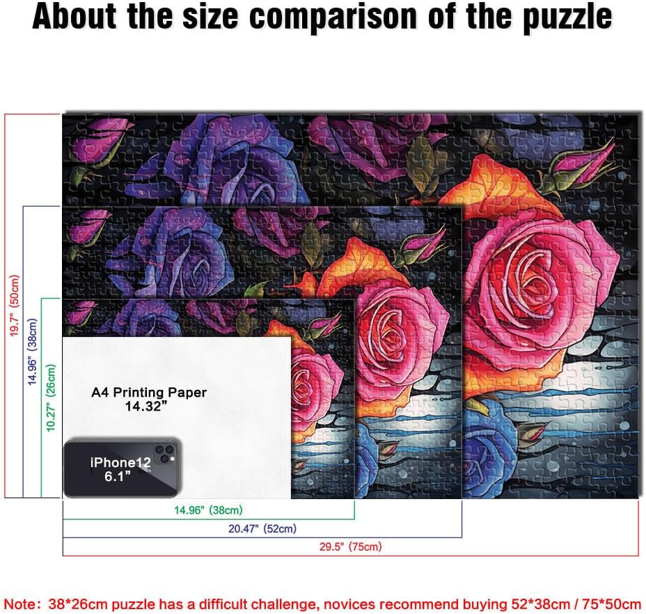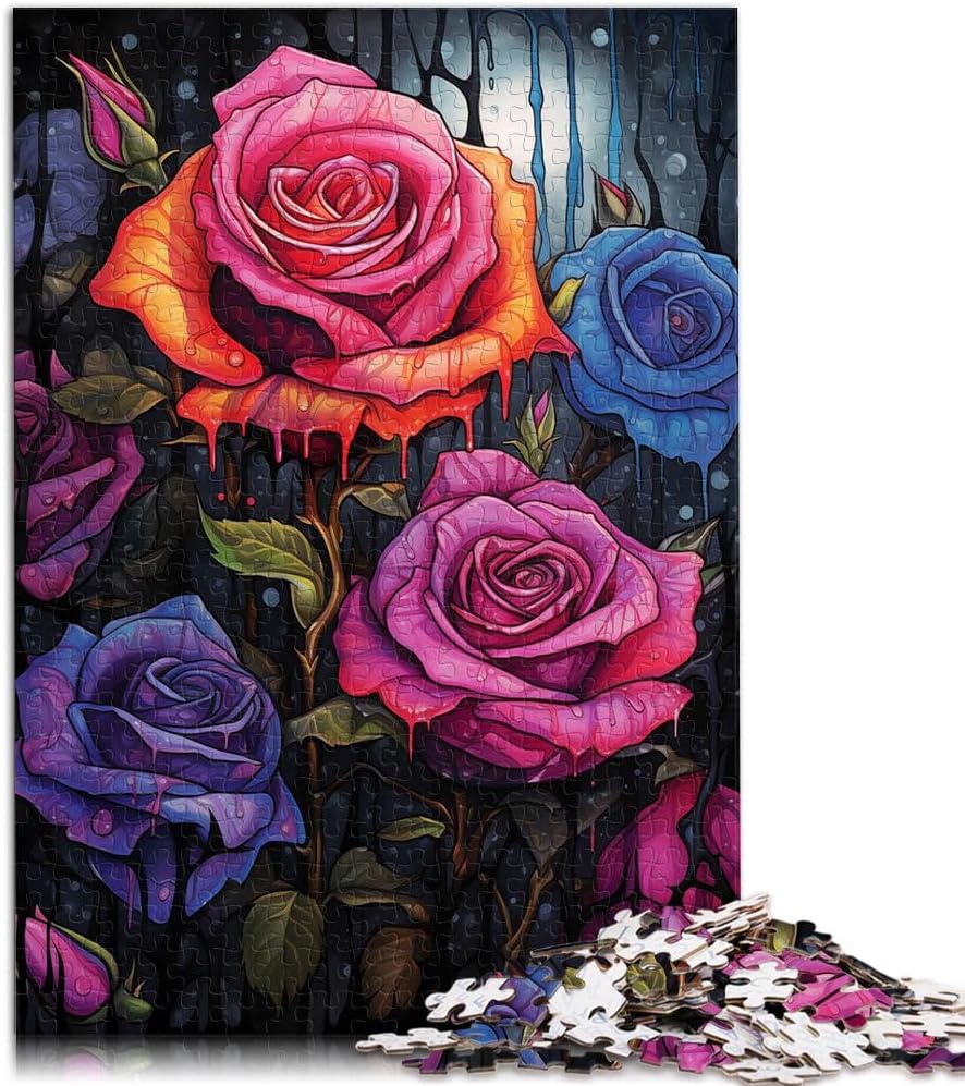 Puzzle da 1000 pezzi per adulti e adolescenti Rose in una notte piovosa Fatto di legno per età 14+ Decorazione artistica per la casa grande regalo misurare:50x75cm