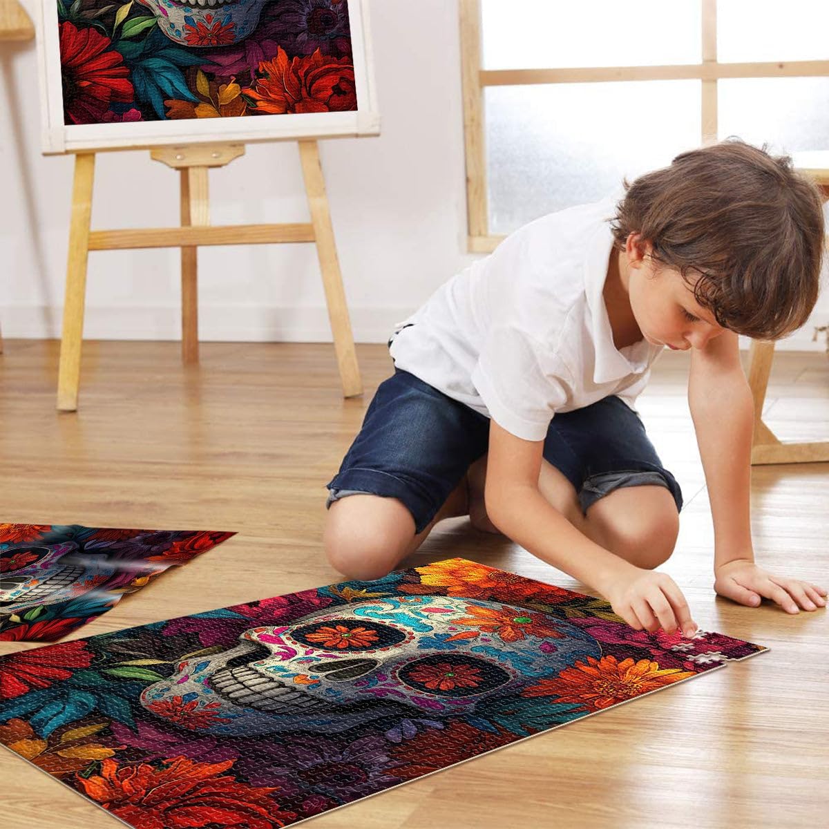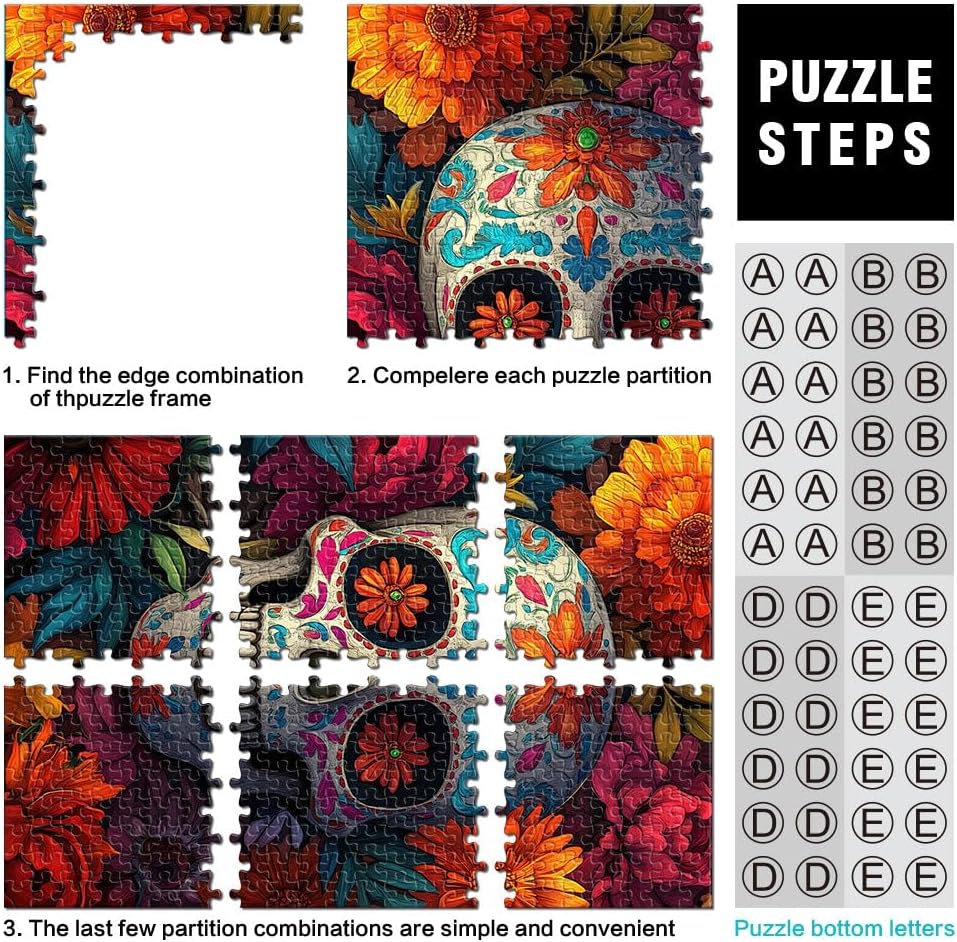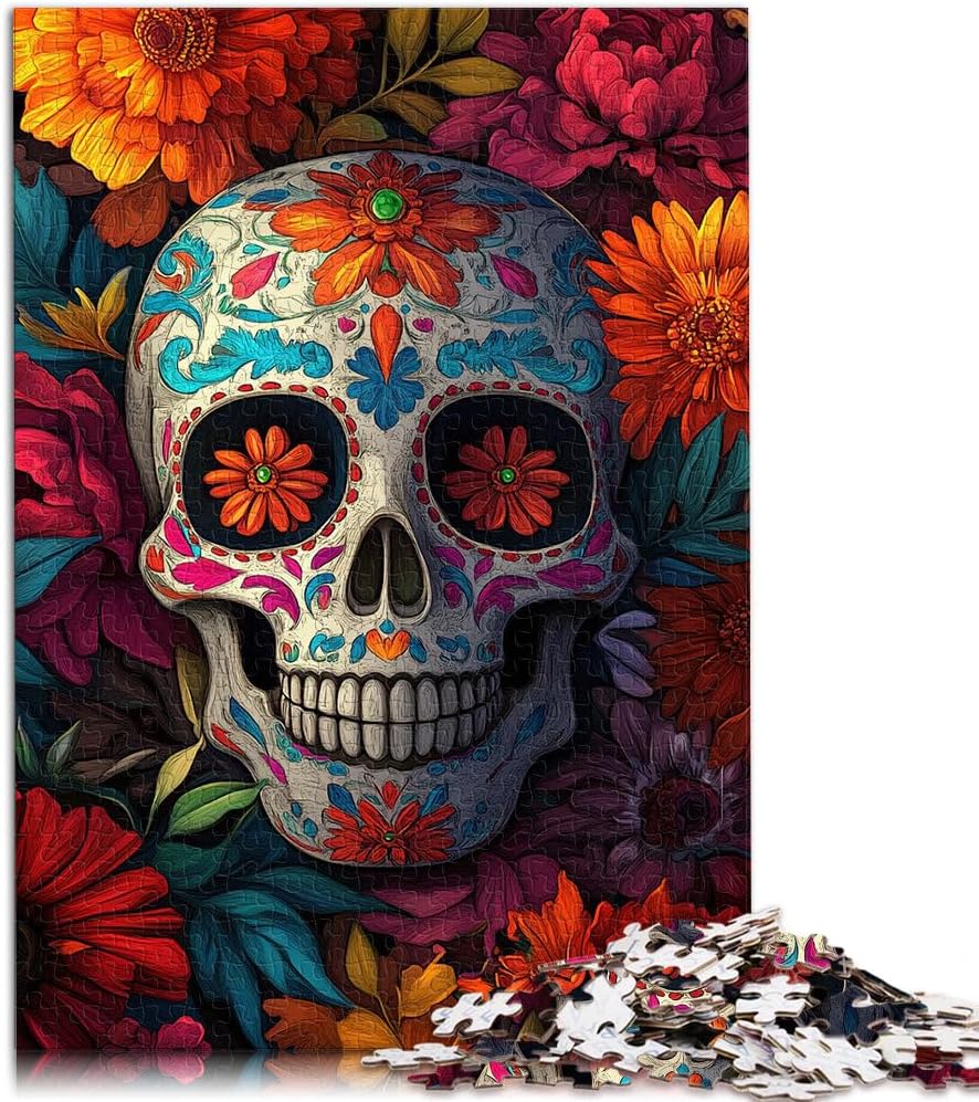 Puzzle da 1000 pezzi per adulti e adolescenti Teschio e fiori Fatto di legno Adatto a partire dai 14 anni Giocattoli per l'intrattenimento in famiglia Regali di compleanno e regali unici