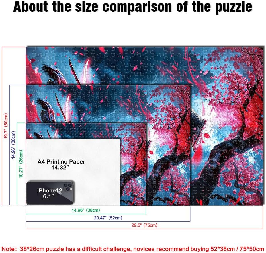 Puzzle da 1000 pezzi per adulti ninja samurai giapponese Fatto di legno per età pari o superiore a 14 anni Decorazione perfetta Regalo di opere d'arte misurare:50x75cm
