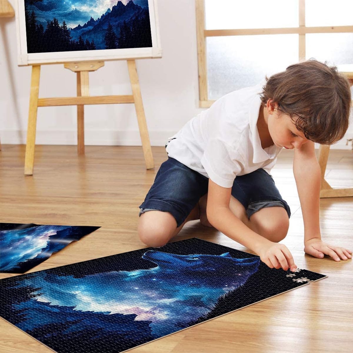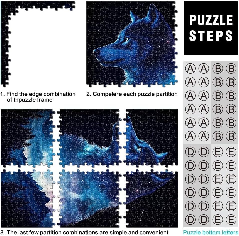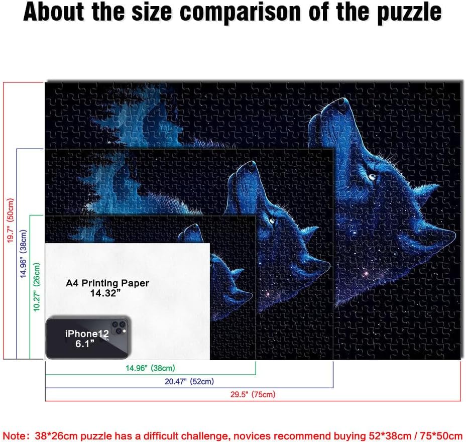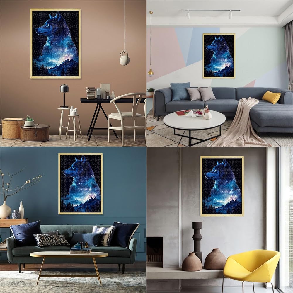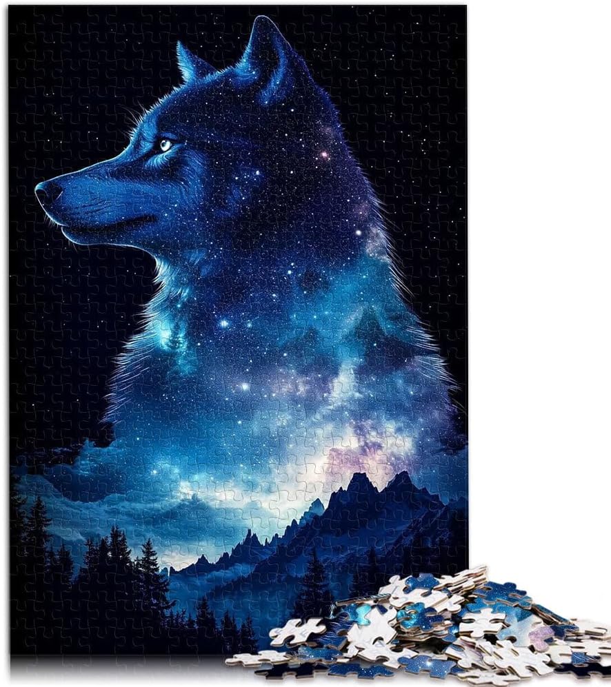 Puzzle da 1000 pezzi per adulti Notte della galassia del lupo Fatto di legno per età 14+ Vacanze a casa: ammazzare il tempo Regali di giochi impegnativi misurare:50x75cm