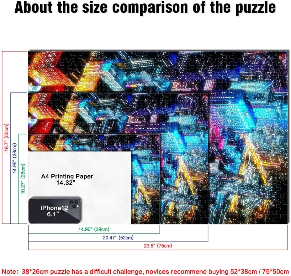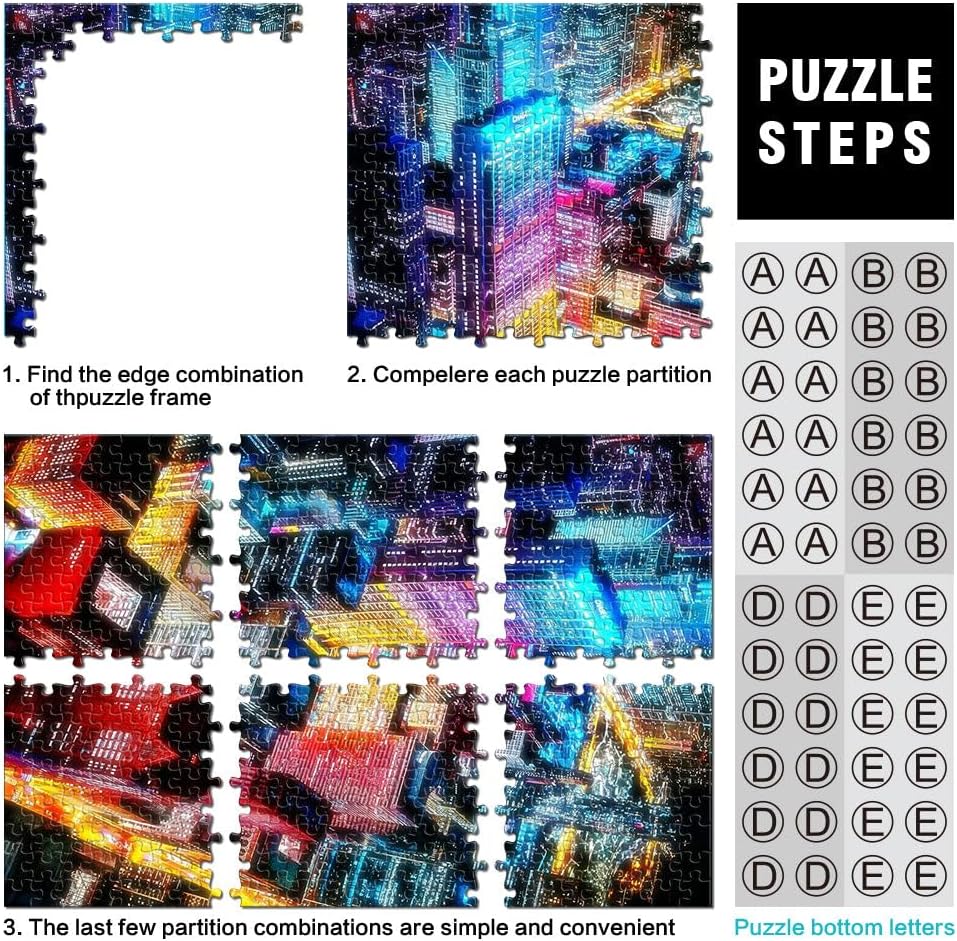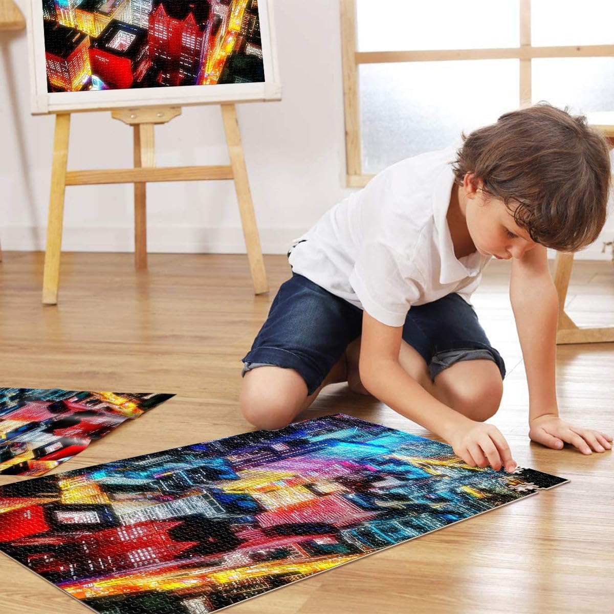 Puzzle da 1000 pezzi per adulti “Notte nella città al neon” Fatto di legno,per e da 14 anni in su Giocattoli antistress Attività divertenti da fare a casa, regali di compleanno, regali di viaggio。